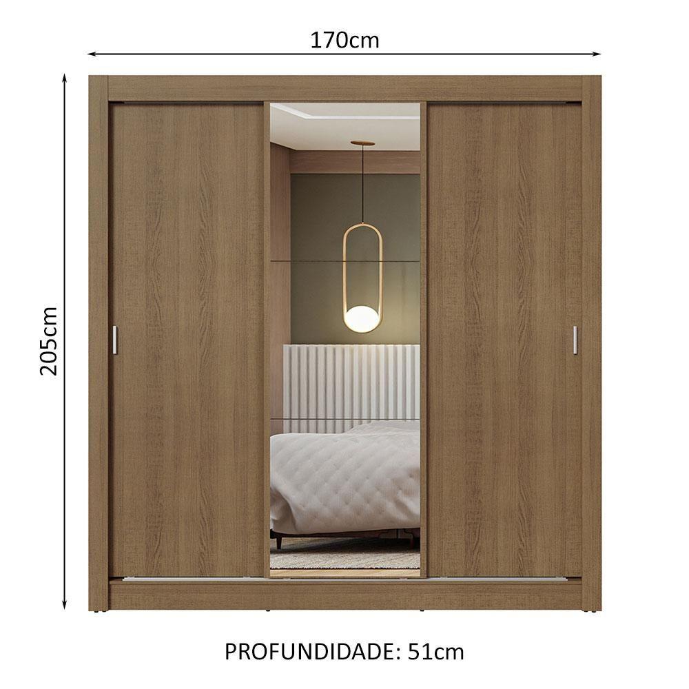Guarda-roupa Casal 3 Portas Correr Espelho Rustic Nobre