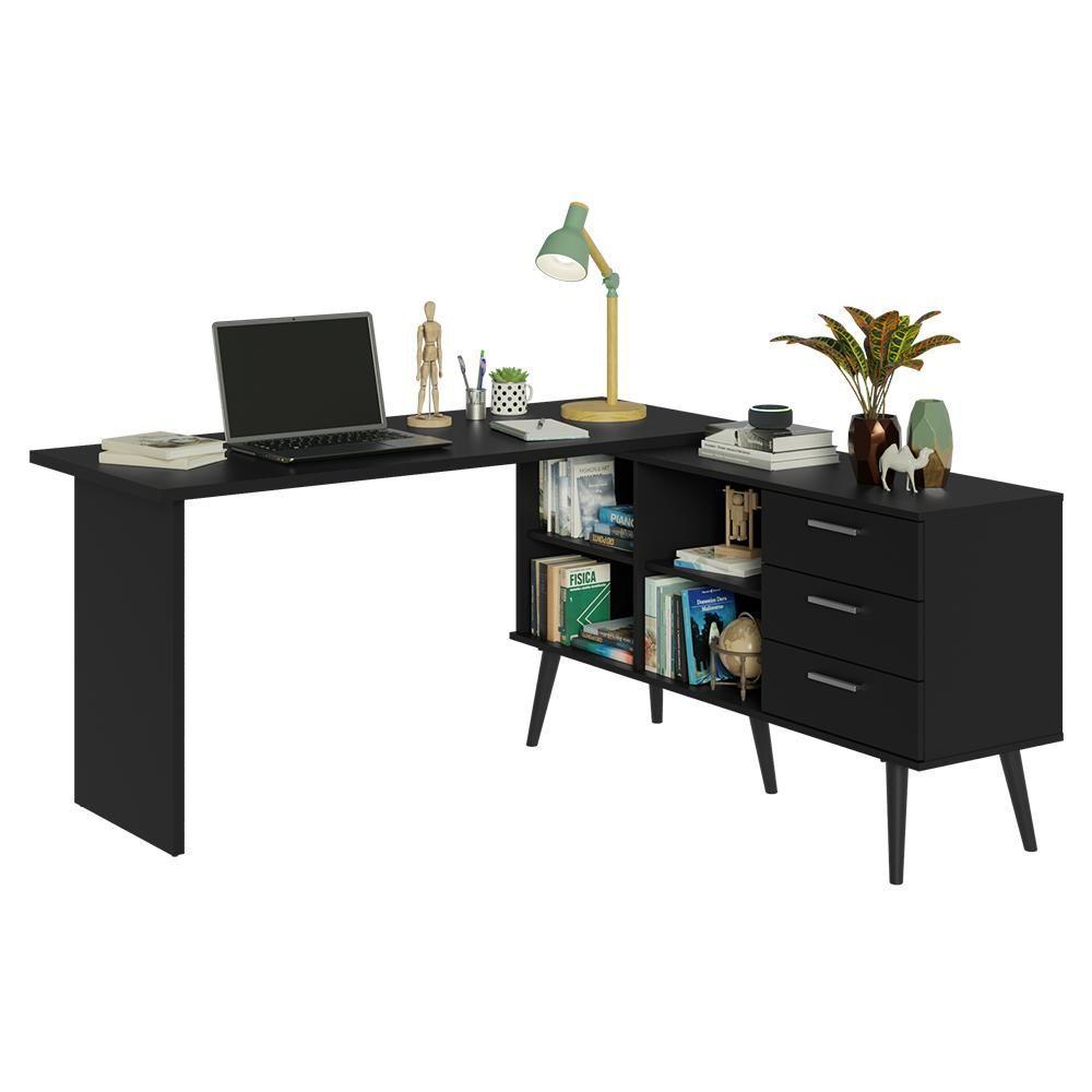 Escrivaninha Mesa De Estudos De Canto 3 Gavetas Preto Lisboa Madesa