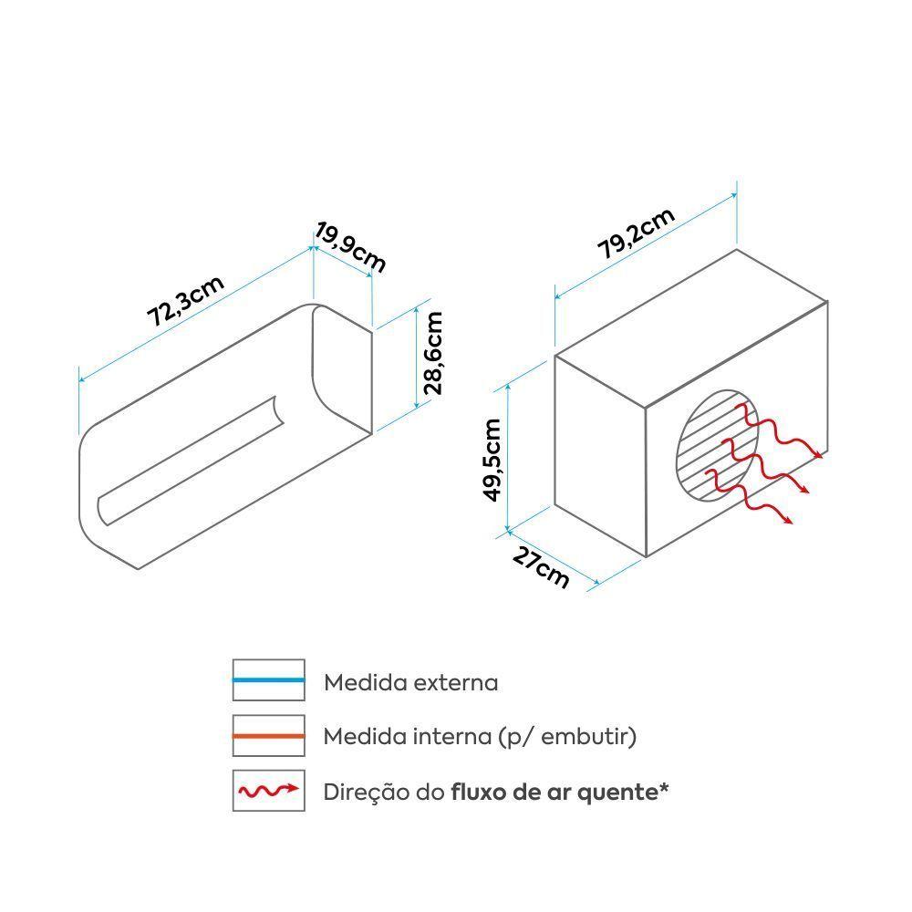 Ar Condicionado Split Hi Wall Inverter R-32 AI Ecomaster Midea 12.000 Btus Frio 220V Ar-condicionado Inverter com Inteligência Artificial e Tripla Filtragem Air Magic: inovação, saúde e performance no dia a dia. Alta tecnologia, conforto personalizado e ar puro todos os dias: o Ar-Condicionado Inverter com Inteligência Artificial AI ECOMASTER e Tripla Filtragem Air Magic chegou para elevar o padrão da climatização inteligente. Mais do que um aparelho, ele é um sistema completo de bem-estar, desenvolvido para atender às exigências de quem não abre mão de eficiência, saúde e conectividade no dia a dia. AI ECOMASTER: inteligência que entrega economia e desempenho A revolucionária tecnologia AI ECOMASTER utiliza uma base sólida de Big Data para otimizar o funcionamento do ar-condicionado em tempo real, reduzindo em até 30% o consumo de energia em qualquer temperatura. O sistema entende o comportamento do usuário, ajusta-se automaticamente e entrega uma climatização precisa, sem desperdícios. Conforto térmico com controle total O modelo oferece uma série de recursos que colocam o controle climático na palma da sua mão: AI Controle de Umidade, que regula a umidade do ar de forma automática AI Curva de Sono, que ajusta suavemente a temperatura durante a noite Comando por voz com Alexa, Google Assistant e Apple Home Geolocalização inteligente, que liga o aparelho quando você se aproxima e desliga ao sair de casa Modo Pet Care, garantindo que seu pet permaneça confortável mesmo quando você estiver ausente Ar sempre puro com tripla filtragem Air Magic Com o sistema exclusivo Air Magic, a qualidade do ar é tratada com seriedade. A combinação de três camadas de filtragem remove impurezas, pólen e alérgenos, ao mesmo tempo em que emite íons negativos que eliminam até 99,9% de vírus e bactérias. Características: Robusto, seguro e projetado para durar Tecnologia Gold Fin contra corrosão e oxidação Proteção anticorrosiva UV na placa eletrônica (PCB), com o dobro da espessura Resistência a oscilações elétricas entre 151V e 265V Autolimpeza Reversa, que mantém a unidade externa livre de poeira Sistema de Autolimpeza em 4 etapas, que elimina sujeiras e mofo da unidade interna Design funcional e instalação simplificada Pode ser instalado a apenas 5 cm do teto Estrutura destacável com parafuso único para fácil acesso interno Saída de ar elevada e defletor removível para higienização prática Resfriamento instantâneo e distribuição térmica eficiente Smart Turbo: sensação de frescor em apenas 30 segundos Brisa Indireta: evita o desconforto de jatos de ar direto Modo frio com efeito cascata e modo quente com efeito lareira Função Siga-me: acompanha o sensor do controle remoto Modo LED Off: silencia os sinais sonoros e desliga o display para noites tranquilas Especificações Técnicas Capacidade (BTUs): 12000 Temperatura: Frio On/Off ou Inverter: Inverter Voltagem: 220V Fase: Monofásico Conexão Wi-Fi: Sim Material da serpentina: Cobre Tipo da condensadora: Horizontal Classificação energética (INMETRO): A Gás refrigerante: R32 Corrente elétrica de refrigeração (A): 8,56 Potência de refrigeração (W): 3520 Consumo de energia: 382,5 kWh/ano Diâmetro da linha (sucção): 3/8 pol Diâmetro da linha (líquido): 1/4 pol Material do condensador: Metal Capacidade mínima/nominal/máxima: 12000 Temperatura mínima/máxima: 17 ~ 32 Acionamento após queda de energia: Manual (pode programar religar automático) Categoria: Split Hi Wall Subcategoria: Inverter Nacionalidade: Nacional Modelo/Descrição: Split Inverter Midea AI Ecomaster Marca: Midea Conteúdo da Embalagem: 1 Condensadora; 1 Evaporadora; 1 Manual Código Modelo Condensadora: 38EZVCA12M5 Código EAN Condensadora: 7898945167581 Largura: 79,2 cm Altura: 49,5 cm Peso líquido: 19,3 kg Peso bruto: 21,1 kg Alimentação de energia: Condensadora Capacidade Evaporadora: 12000 BTUs Controle de ar (cima/baixo): Automático Controle de ar (direita/esquerda): Automático Diâmetro da linha (sucção): 3/8 pol Diâmetro da linha (líquido): 1/4 pol Código EAN: 7898945167543 Largura: 72,3 cm Altura: 28,6 cm Profundidade: 19,9 cm Código Modelo Evaporadora: 42EZVCA12M5 Garantia do Produto: 3 meses conforme CDC + 21 meses adicionais ao instalar com empresa/técnico credenciado Midea Carrier (totalizando 24 meses para o produto e 10 anos para o compressor, conforme certificado de garantia). Para mais informações, consulte o manual do produto. Código ANATEL: 16205-22-05648 NCM: 8415.90.20