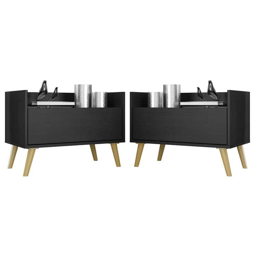Kit com 2 Mesas de Cabeceira 60 Cm com Pés Retrô Preta