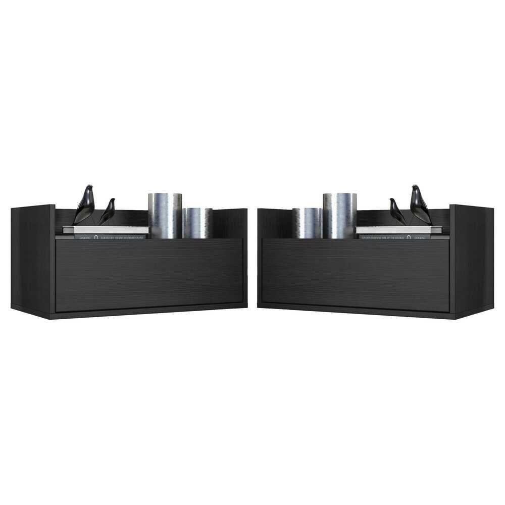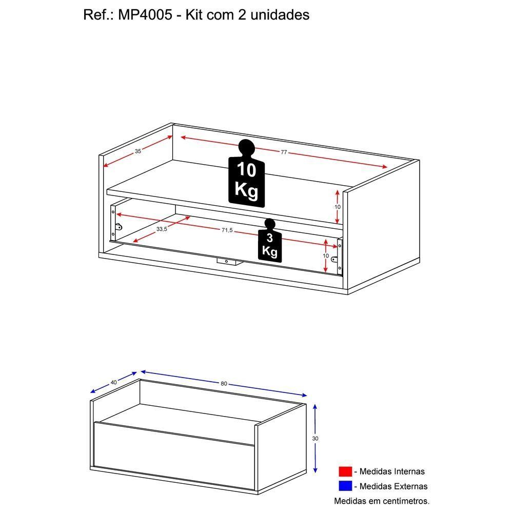 O Kit com 2 Mesas de Cabeceira 80 cm Suspensa Multimóveis é uma solução prática para você deixar o seu quarto mais bonito e complementar seu ambiente. Produzido em MDP com acabamento acetinado (cerca de 20% de brilho), que garante maior durabilidade e facilidade na limpeza, possui 1 gaveta com amplo espaço interno e corrediças metálicas que proporcionam mais leveza no manuseio. Ainda, acompanha kit para ser montado de forma suspensa, conforme a altura que você quiser do chão. Seu design clean permite que seja utilizado em diferentes ambientes, adaptando-se conforme sua necessidade.Conteúdo da Embalagem:2 (duas) mesas de cabeceira2 (dois) kits com suporte para mesa de cabeceiraDimensões do produto montado:Altura: 30cm | Largura: 80cm | Profundidade: 40cm*Você pode consultar as medidas internas na imagem técnica do produto.Disponível nas cores:Branco - Rustic/Branco - Preto Texturizado*As cores do produto podem sofrer variações de tonalidade de acordo com as configurações do seu dispositivo.Imagem meramente ilustrativa. Decoração não acompanha o produto.O produto será entregue desmontado e não disponibilizamos o serviço de montagem.