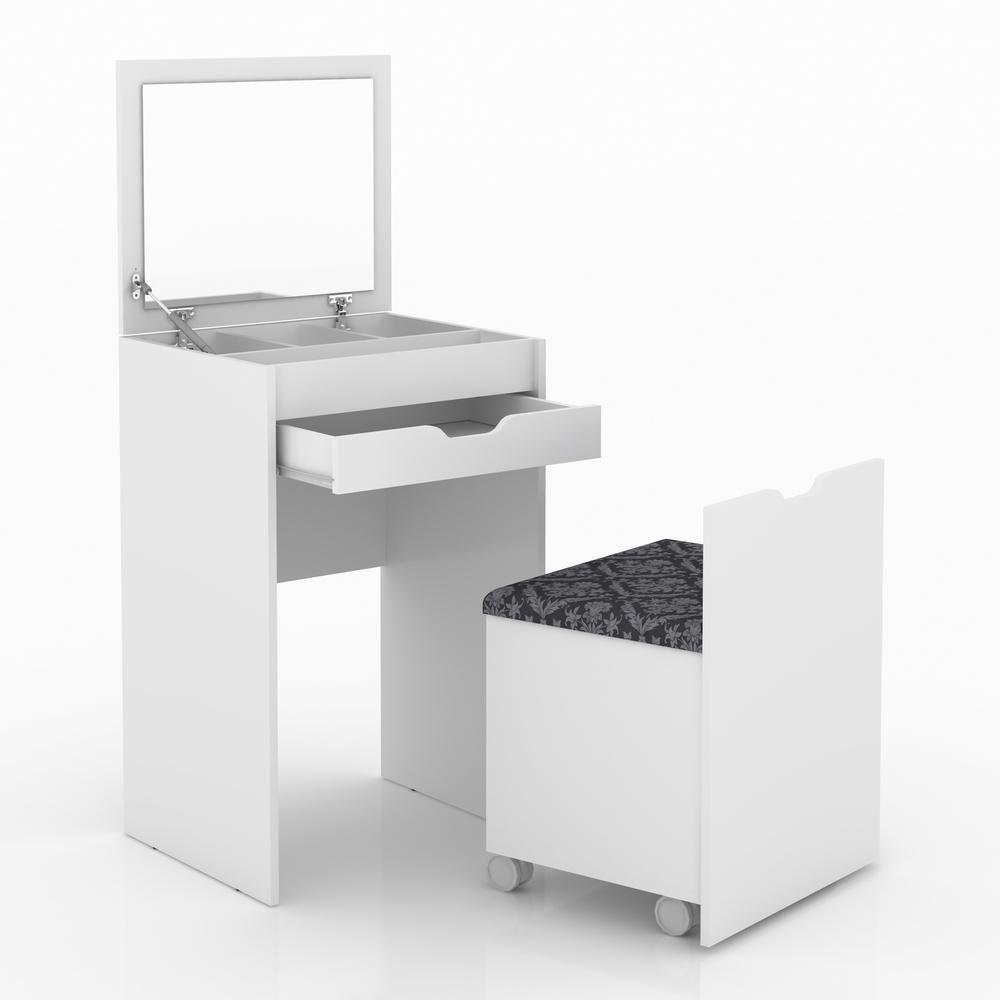 Penteadeira Com Puff E Espelho Cr35020 Branco/Preto