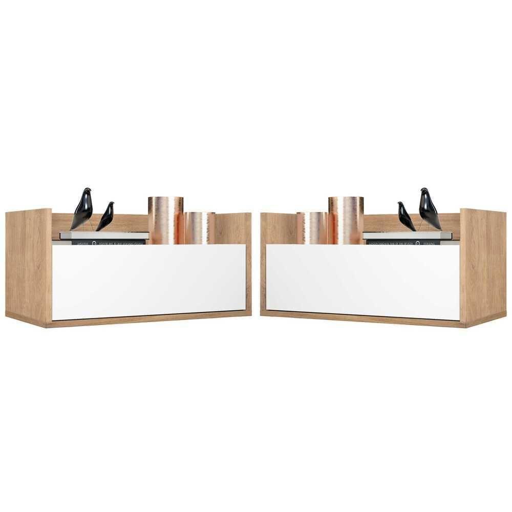 Kit Com 2 Mesas De Cabeceira 80Cm Suspensa Multimóveis V4005 Rustic/Branca Rustic/Branco