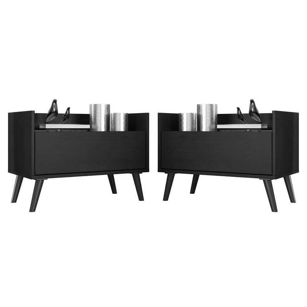 Kit Com 2 Mesas De Cabeceira 60Cm Retrô Multimóveis V3633 Preta Preto
