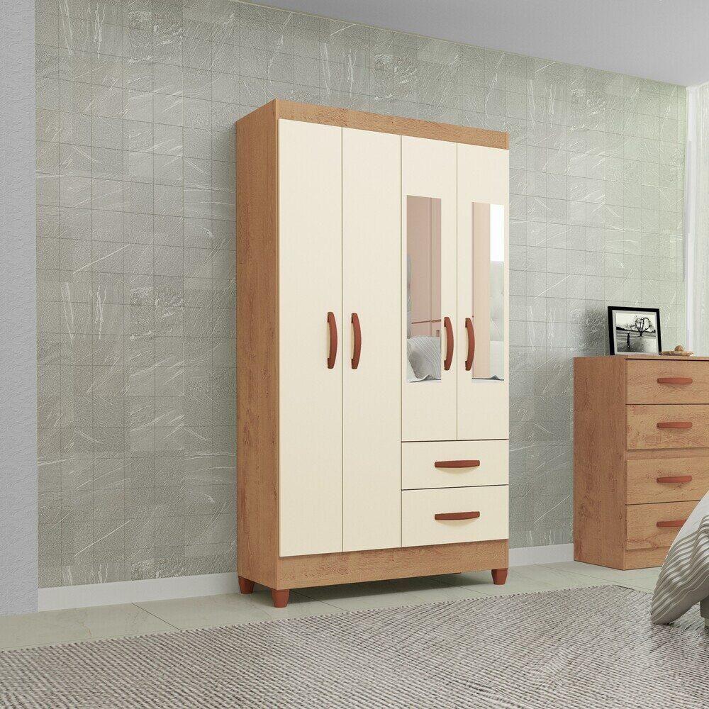 Guarda-roupas 4 Portas 2 Gavetas E Espelhos Multimóveis Cr35141 Canelato Rústico/natura Off White