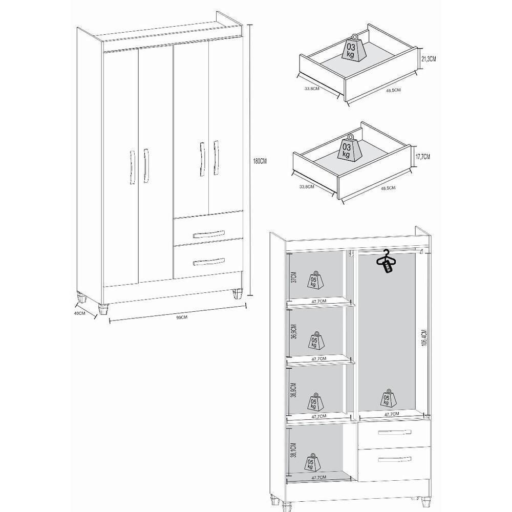 O Guarda-Roupas 4 Portas 2 Gavetas e Espelhos Multimóveis CR35141 é o móvel perfeito para quem busca praticidade e estilo no quarto. Produzido em MDP de alta qualidade, possui um acabamento em pintura UV que garante durabilidade e resistência. Com suas 5 divisórias internas, incluindo 1 divisória maior com cabideiro, você terá espaço de sobra para organizar suas roupas e acessórios. Além disso, conta com 2 gavetas equipadas com corrediças metálicas para facilitar o acesso aos seus pertences. Os espelhos nas portas proporcionam elegância e trazem uma sensação de amplitude ao ambiente. Os puxadores em ABS proporcionam um toque moderno ao guarda-roupa, enquanto os pés em PVC garantem estabilidade e segurança. Conteúdo da Embalagem:1 (um) Guarda-RoupasManual de MontagemKit FerragemDimensões do produto montado:Altura: 180cm | Largura: 99cm | Profundidade: 40cm*Você pode consultar as medidas detalhadas na imagem técnica do produto.*As cores do produto podem sofrer variações de tonalidade de acordo com as configurações do seu dispositivo.Imagem meramente ilustrativa. Decoração não acompanha o produto.O produto será entregue desmontado e não disponibilizamos o serviço de montagem.