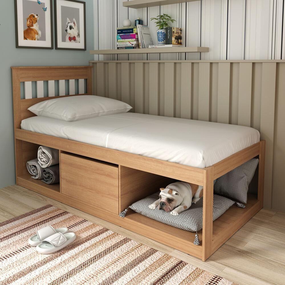 Cama Solteiro Com 1 Porta E Nichos Espaço Pet Multimóveis Cr40112 Amêndoa-branco Amêndoa-branco