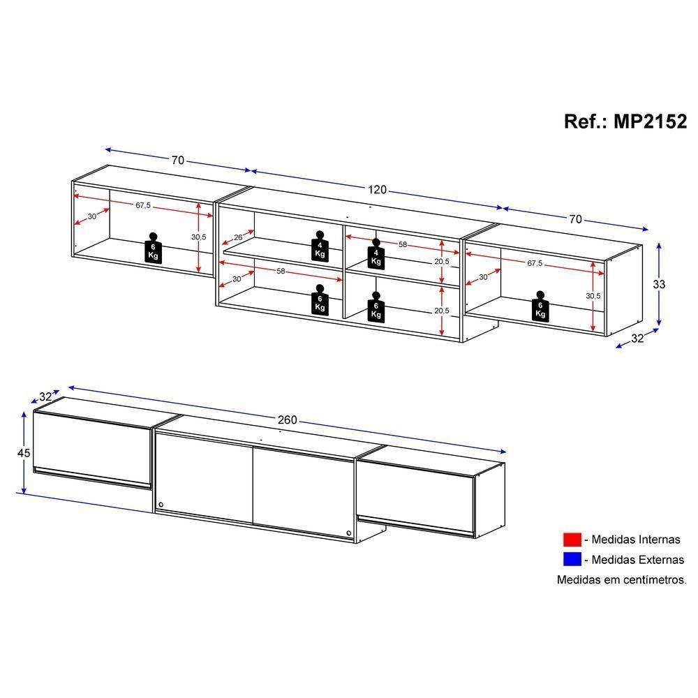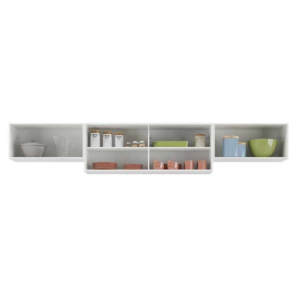 O Kit 3 Armários de Cozinha Aéreos 4 Portas Veneza Multimóveis MP2152 é a escolha perfeita para deixar sua cozinha elegante e prática. Fabricado em MDP com acabamento acetinado (cerca de 20% de brilho), ele garante durabilidade e resistência. Com 2 portas basculantes com puxadores estilosos em ABS, você terá facilidade de acesso aos seus utensílios. As 2 portas de correr em vidro reflecta trazem elegância ao ambiente. Possui 2 prateleiras internas para manter os utensílios de cozinha organizados e ao alcance das mãos. O kit é composto por 3 módulos separados, para que você os monte do jeito que preferir!Conteúdo da Embalagem:2 (dois) Armários Aéreos 70cm1 (um) Armário Aéreo 120cmManual de MontagemKit FerragemDimensões do produto montado:Altura: 45cm | Largura: 260cm | Profundidade: 32cm*Você pode consultar as medidas detalhadas na imagem técnica do produto.*As cores do produto podem sofrer variações de tonalidade de acordo com as configurações do seu dispositivo.Imagem meramente ilustrativa. Decoração não acompanha o produto.O produto será entregue desmontado e não disponibilizamos o serviço de montagem.