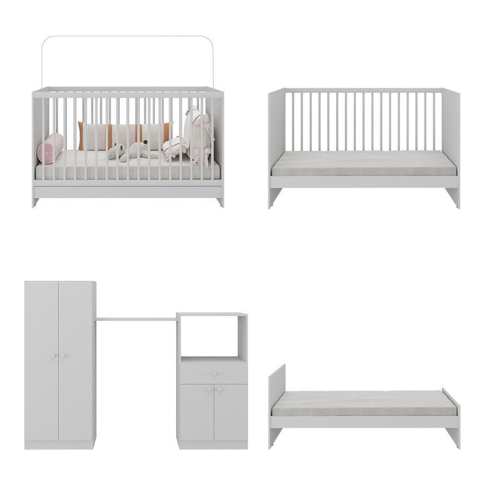 Berço 3 Em 1 e Guarda-roupas 4 Portas 1 Gaveta Mp4144 Branco