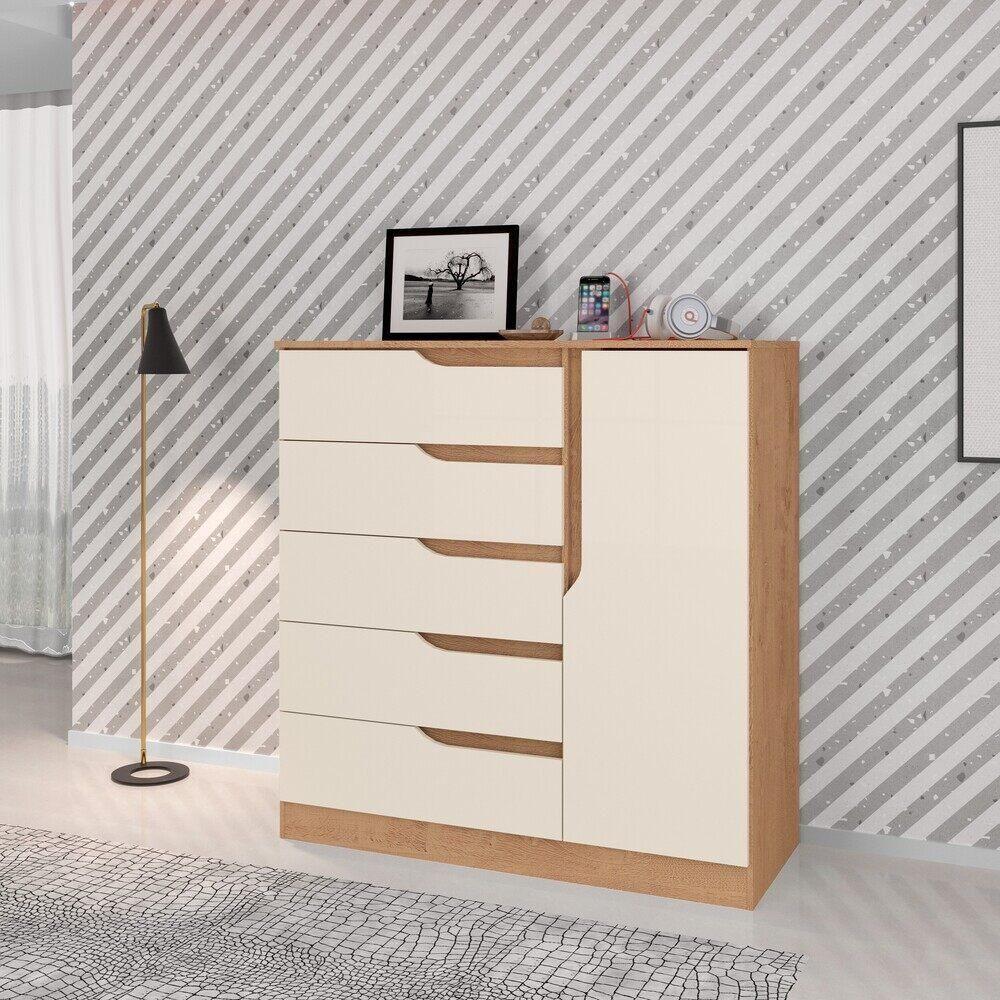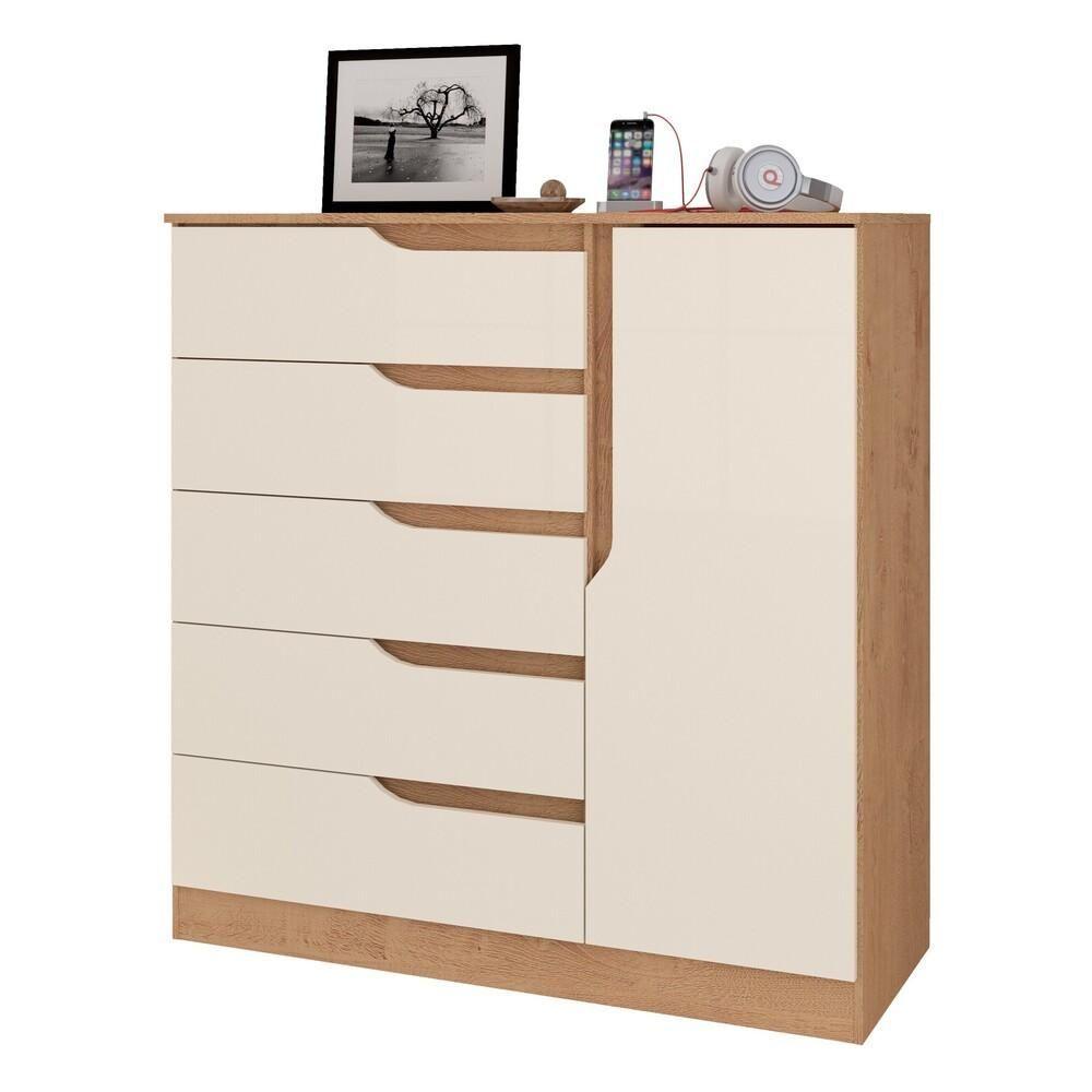 Cômoda 5 Gavetas 1 Porta Canelato Rústico-natura Off White Canelato Rústico-natura Off White