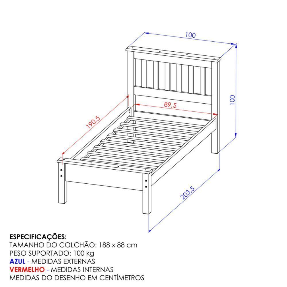 A Cama de Solteiro Madeira Maciça para Colchão 188 x 88cm Multimóveis CR35241 é produzida em madeira maciça de pinus, garantindo durabilidade e resistência. Seu acabamento em pintura PU confere um toque sofisticado e facilidade na limpeza do móvel. Com design clássico e elegante, esta cama é perfeita para qualquer estilo de quarto. Suporta até 100kg, proporcionando segurança nas noites de sono. NÃO acompanha colchão (tamanho do colchão indicado: 188 x 88cm).Conteúdo da Embalagem:1 (uma) Cama de SolteiroManual de MontagemKit FerragemDimensões do produto montado:Altura: 100cm | Largura: 203,5cm | Profundidade: 100cm*Você pode consultar as medidas detalhadas na imagem técnica do produto.*As cores do produto podem sofrer variações de tonalidade de acordo com as configurações do seu dispositivo.Imagem meramente ilustrativa. Decoração não acompanha o produto.O produto será entregue desmontado e não disponibilizamos o serviço de montagem.
