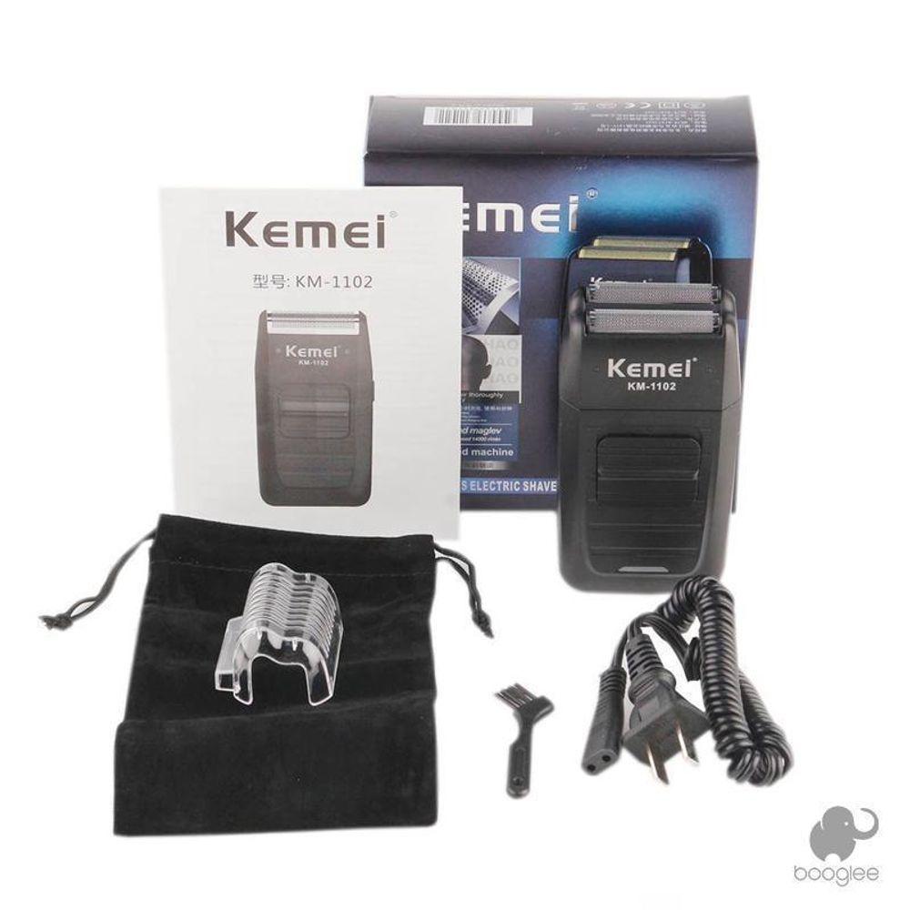 Barbeador Elétrico Bivolt Kemei Km 1102 Barbeador Elétrico Bivolt Kemei KM 1102Este barbeador é ideal para pessoas que tenham alergia a lâmina ou a navalha, que é um método muito agressivo. Com o Kemei 1102 você não terá essa irritação.Lembrando que ele não é feito para pelos grandes.Ele é recarregável em uma tomada 110 ou 220v, leva 8 horas para recarregar e tem uma autonomia de uso de 45 minutos.Este modelo tem um diferencial por ter duas lâminas, que proporciona um corte com mais rapidez e eficiência.Atrás dele possui um trimmer que serve para aparar costeletas e a barba, acompanha também uma bolsinha para levar em suas viagens ou guardar o produto.Este aparador é da marca Kemei, uma marca muito promissora que vem fazendo produtos de ótima qualidade e com um preço justo focado no mercado brasileiro, ao adquirir este produto tenha certeza de ter feito um boa aquisição. Esta maquininha possui qualidade e mais funcionalidades que muitas outras de marcas conhecidas, que custam o dobro, ou três vezes mais.Descrição Técnica:Modelo: KM-1102Tempo de Recarga: 8 HorasTempo de Uso: 45 MinutosPotência Motor: 3WVoltagem de entrada : 110 ou 220v ( Bivolt automático, pode utilizar nas tomadas do Brasil sem problemas )Conteúdo Da Embalagem:1 Barbeador KM-11021 Cabo de energia1 Escovinha de Limpeza1 Bolsa1 Tampa Protetiva para o Barbeador1 Manual
