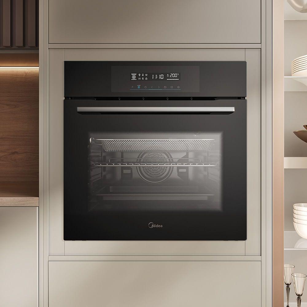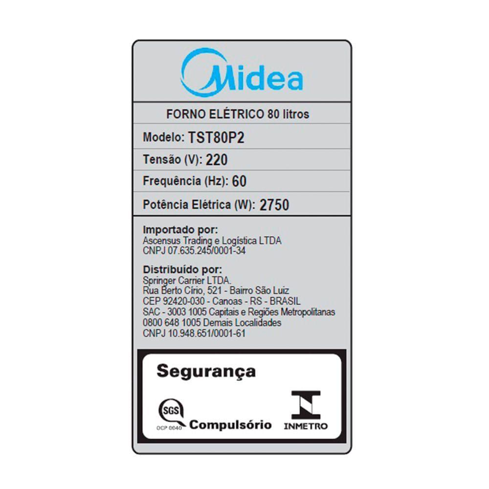 Forno Elétrico De Embutir 80L Touch Com Air Fryer Midea TST80P2 220V