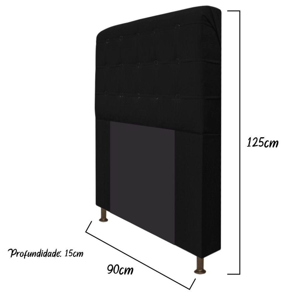 Cabeceira Estofada 90 Cm Solteiro Com Botonê Suede Preto