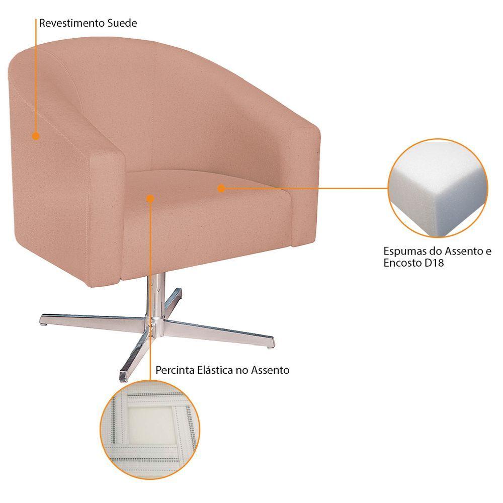 Poltrona Decorativa Luiza Base Giratória De Metal Suede Rosê