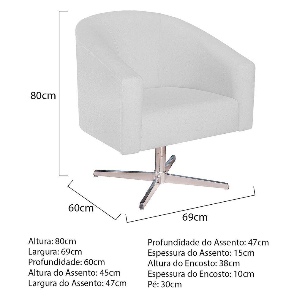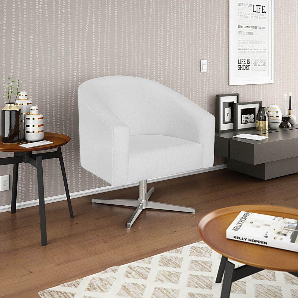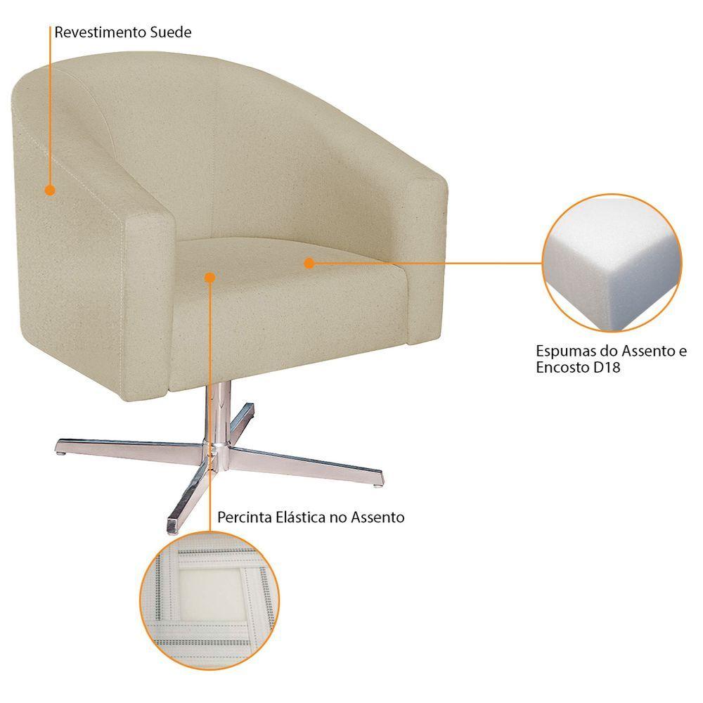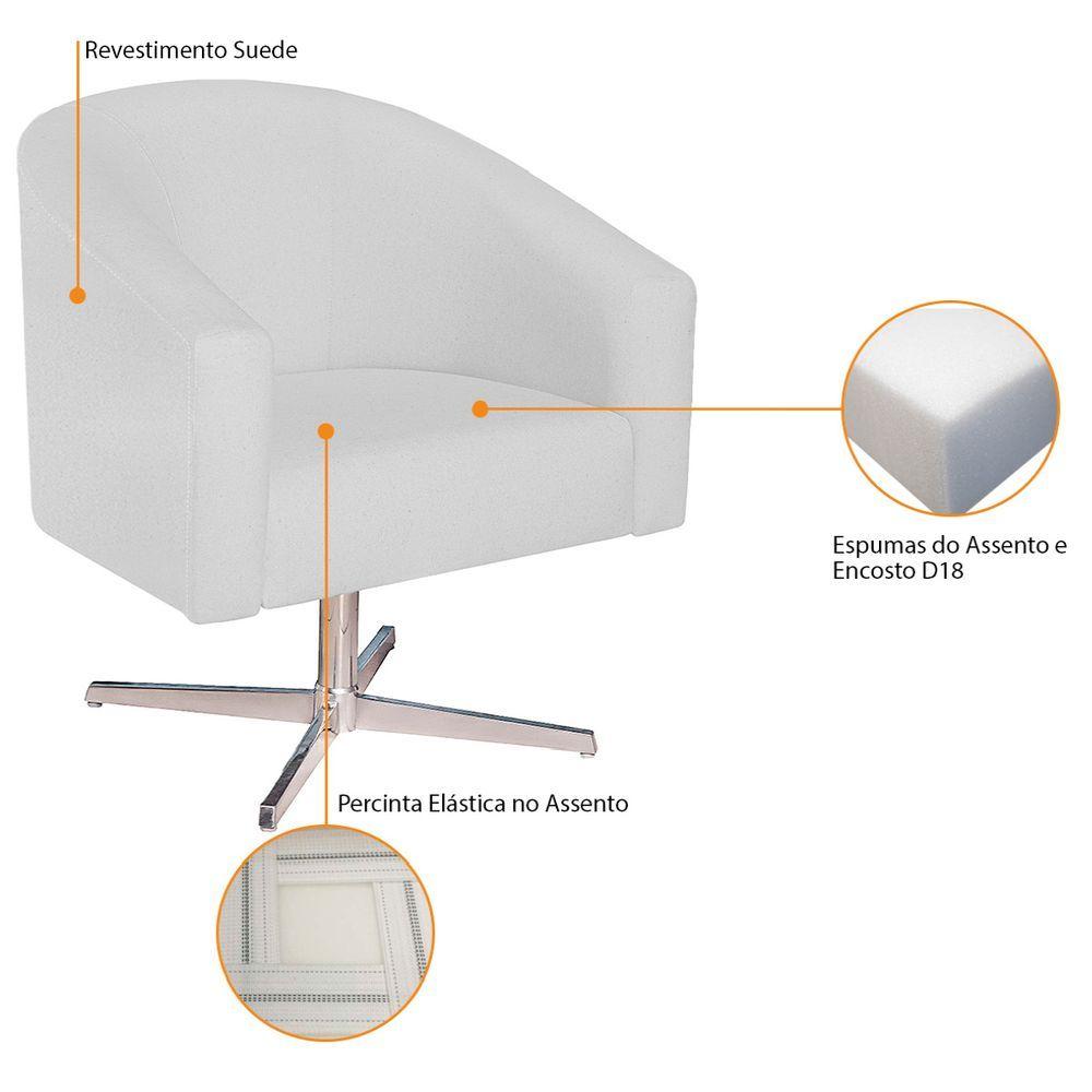 Poltrona Decorativa Luiza Base Giratória De Metal Suede Branco