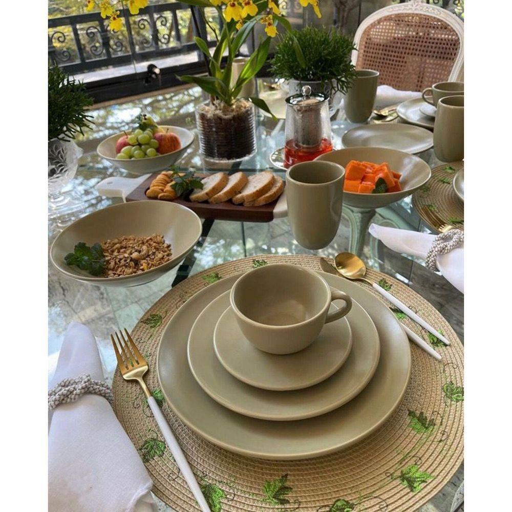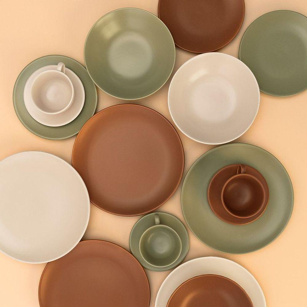 Aparelho De Jantar 20 Peças Oliva OxfordAparelho de Jantar 20 Peças Oliva OxfordO estilo nórdico, conhecido em todo o mundo, é marcado pelo minimalismo. O nome e o formato das peças do modelo Unni, palavra islandesa que significa amado, buscaram como inspiração a simplicidade e a funcionalidade, sem perder a elegância. Com peças em formato mais clean e discretas, o destaque, no entanto, é o prato fundo que possui capacidade para 820 ml, ideal para servir sopas e cremes. Os tons de verde são tendência e ditam algumas referências em artigos de moda e decoração há um tempo. A coleção Unni Oliva traz às louças a cor dessa fruta, originária da Oliveira, além de outra novidade: o efeito acetinado. Este acabamento fino permite uma sensação diferente ao tocar as peças, estimulando ainda mais os sentidos. Produzido em cerâmica, o aparelho de jantar Unni Oliva conta com prato raso, prato fundo, prato de sobremesa e xícara com pires.Aparelho de Jantar 20 Peças Oliva Oxford - Incluso4 Pratos Rasos - 26 cm4 Pratos Fundos - 20 cm4 Pratos Sobremesa - 19 cm4 Pires de Chá - 14 cm4 Xícaras de Chá - 200 mlAparelho de Jantar 20 Peças Oliva Oxford - InformaçõesUso: Resistente a micro-ondas, resistente a lava-louçasMaterial: CerâmicaFormato: RedondoDecoração: Unni OlivaCor: VerdeEfeito: Acetinado