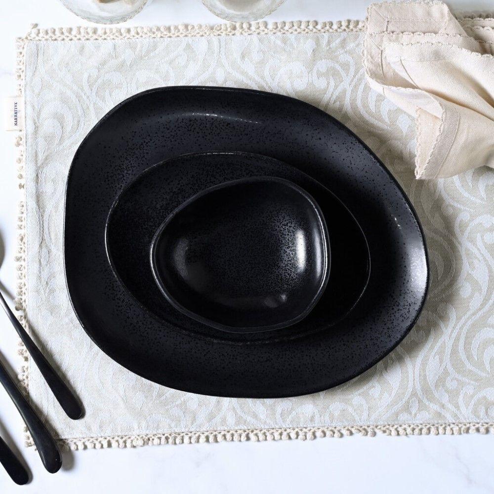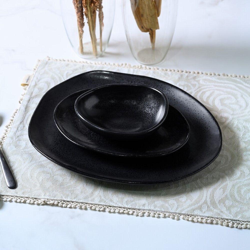 Jogo De Pratos Oval 18 Peças Orgânico Vanilla Porto BrasilJogo de Pratos Oval 18 Peças Orgânico Eclipse Porto BrasilA coleção Oval Orgânico Eclipse da Porto Brasil traduz a sofisticação em um design autêntico e contemporâneo. Com formas orgânicas que ressaltam a beleza do imperfeito e a naturalidade das linhas fluidas, os pratos ganham ainda mais destaque no acabamento Eclipse, que traz intensidade e elegância com seu tom profundo e marcante. Peças versáteis e impactantes, perfeitas para compor mesas modernas e cheias de estilo, valorizando desde o dia a dia até ocasiões especiais.Jogo de Pratos Oval 18 Peças Orgânico Eclipse Porto Brasil - Incluso6 Pratos Rasos Oval - 31 x 24 cm6 Pratos de Sobremesa Oval - 22,5 x 16,5 cm6 Cumbucas - 14,5 x 4,9 cm (diâmetro x altura) - 265 mlJogo de Pratos Oval 18 Peças Orgânico Eclipse Porto Brasil - InformaçõesUso: Resistente a micro-ondas, resistente a lava-louçasMaterial: Cerâmica stonewareFormato: OvalDecoração: Orgânico EclipseCor: Preto