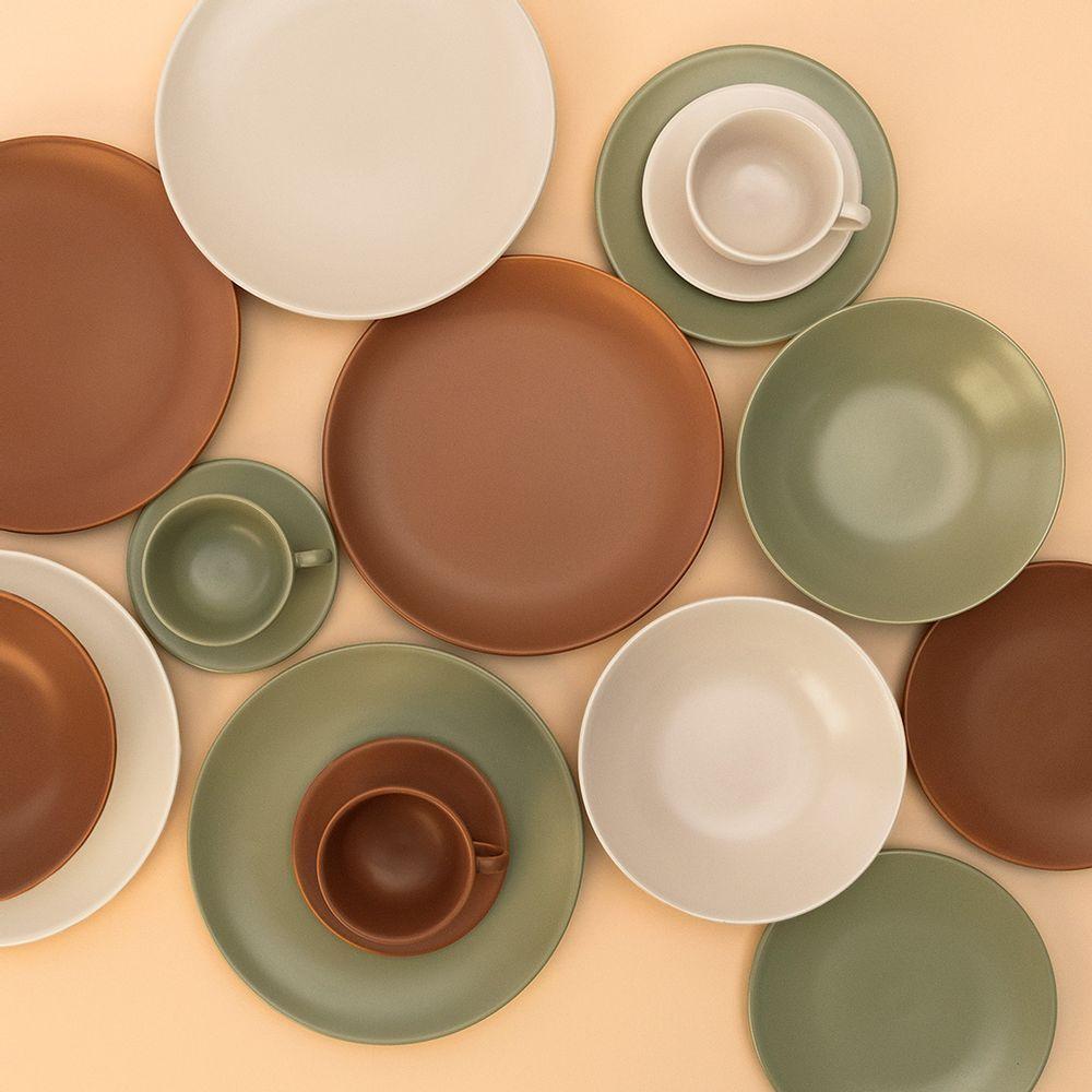 Aparelho De Jantar 20 Peças Merengue OxfordAparelho de Jantar 20 Peças Merengue OxfordO estilo nórdico, conhecido em todo o mundo, é marcado pelo minimalismo. O nome e o formato das peças do modelo Unni, palavra islandesa que significa amado, buscaram como inspiração a simplicidade e a funcionalidade, sem perder a elegância. Com peças em formato discreto, o destaque, é o prato fundo que possui capacidade para 820 ml, ideal para servir sopas e cremes. O modelo em cor de merengue, leva o mesmo nome do clássico doce que mistura açúcar e claras de ovos. A inspiração nessa combinação açucarada deu origem a uma louça clean que combina com diferentes estilos. O efeito acetinado, no entanto, é a grande novidade da coleção: um acabamento fino que proporciona uma sensação diferente ao tocar as peças, estimulando ainda mais os sentidos. Produzido em cerâmica, o aparelho de jantar Unni Merengue conta com pratos rasos, pratos fundos, pratos de sobremesa, xícaras de chás com pires.Aparelho de Jantar 20 Peças Merengue Oxford - Incluso4 Pratos Rasos - 26 cm4 Pratos Fundos - 20 cm4 Pratos Sobremesa - 19 cm4 Pires de Chá - 14 cm4 Xícaras de Chá - 200 mlAparelho de Jantar 20 Peças Merengue Oxford - InformaçõesUso: Resistente a micro-ondas, resistente a lava-louçasMaterial: CerâmicaFormato: RedondoDecoração: Unni MerengueCor: BegeEfeito: Acetinado
