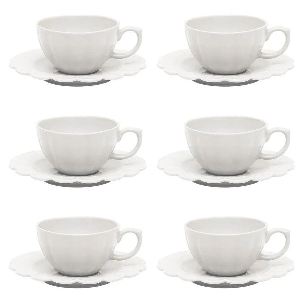 Conjunto De Xícara De Chá Com Pires 06 Peças Flora Camélia Oxford