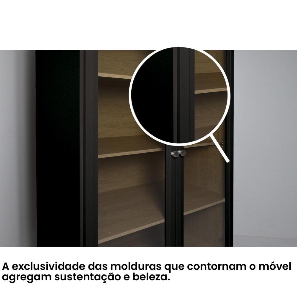 Cristaleira Estante Para Livros Ditália 2 Portas Vidro Preta