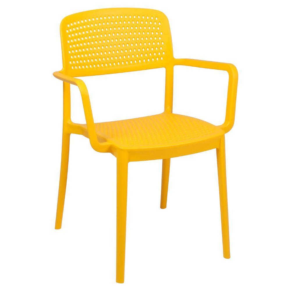 Cadeira Tramontina Serena Com Braços Amarela Empilhável Em Polipropileno Com Proteção Antimicrobiana