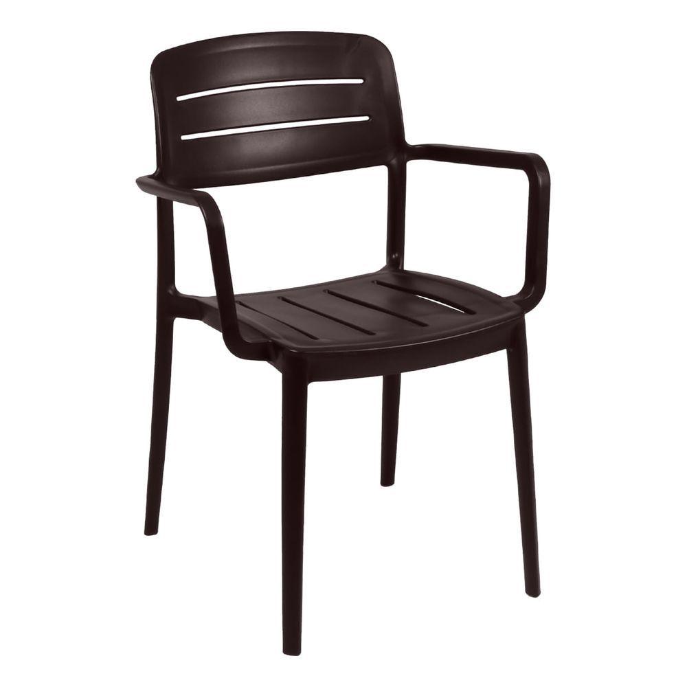 Cadeira Tramontina Amélia Com Braços Marrom Empilhável Em Polipropileno Com Proteção Antimicrobiana