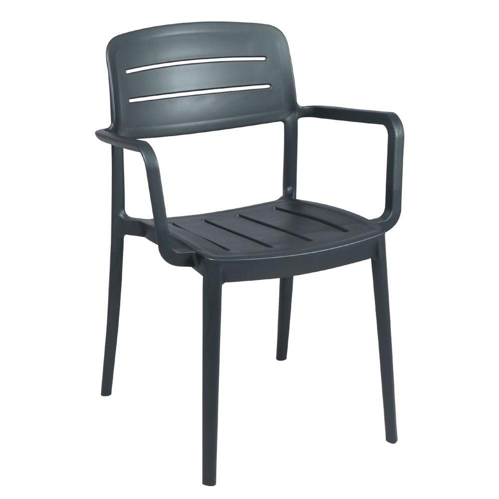 Cadeira Tramontina Amélia Com Braços Grafite Empilhável Em Polipropileno Com Proteção Antimicrobiana