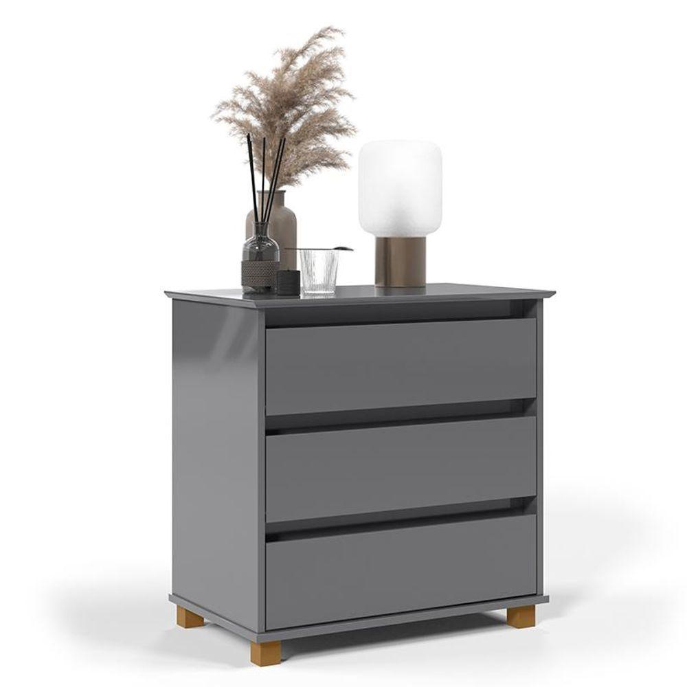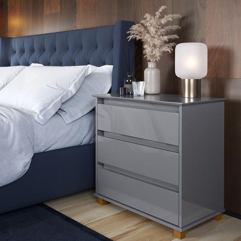 Mesa De Cabeceira Quarto Mini Cômoda 3 Gavetas Cinza