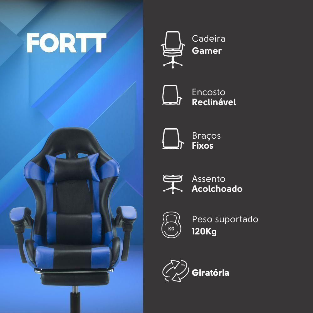 Cadeira Gamer Snake Lancaster Azul - Cgf001-aCadeira Gamer Snake Lancaster Azul - CGF001-AA cadeira ideal para qualquer tipo de ambienteSeja para trabalhar, estudar ou para seu lazer, a cadeira tornou-se um item essencial para o dia a dia. Agora ela não só é mais um item de decoração da casa ou de uso esporádico, como tornou-se ferramenta de trabalho ou estudo de uso continuo e diário.Especificações TécnicasModelo: LancasterBase: plásticoCor: AzulCategoria: GamerEncosto reclinável: SimGraus de inclinação: 135 grausAjuste de altura: SimDensidade da espuma: 60kgs/m3Revestimento: Couro PUEstrutura: Aço com madeiraPeso suportado: 120kgGiratório: SimClasse de pistão: Classe 2Braço ajustável: NãoAcabamento do parafuso: SimCom apoio para os pés: SimTravesseiro para lombar e cabeça: SimTempo Médio para montagem: 30 MinutosMarca: ForttDimensõesAltura mínima: 124 cmAltura máxima: 132 cmProfundidade do assento: 50 cmLargura do assento: 50cmAltura do chão ao assento (mínimo – máximo):42-50cmAltura do chão ao braço (mínimo – máximo): 62-72cmAltura do assento ao braço: 18cmEspessura do assento: 7cmDistância entre os braços: 63 cmAltura do encosto: 82cmLargura do encosto: 54cmPeso do produto: 16,5KgObservações:- Limpar com pano macio seco ou umedecido com água;- O tom da cor do produto pode variar de acordo com lote e/ou características do seu monitor ou tela;- Garantia legal de 90 dias para de fabricação;- Fotos Meramente ilustrativas. Precisa de baterias ou pilhas (areBatteriesRequired): Não | Regulamentações aplicáveis a produtos perigosos (supplierDeclaredDGHZRegulation): Não se aplica