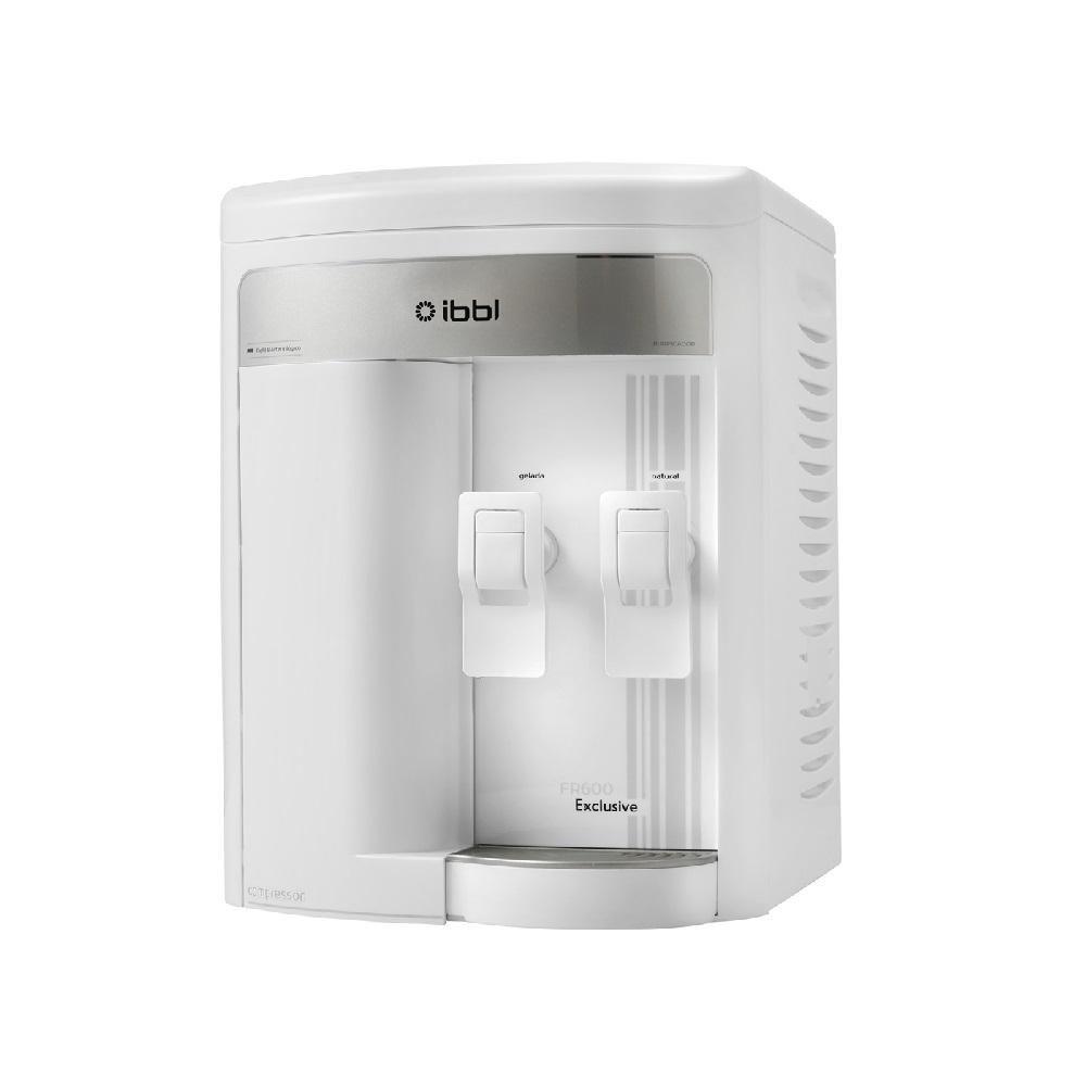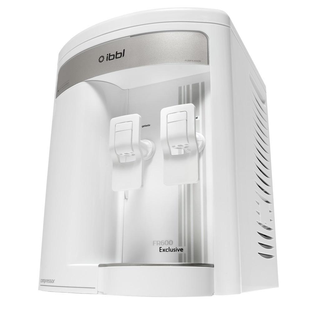 Purificador De água Ibbl Branco FR600 Exclusive 127VPurificador De Água IBBL FR600 Exclusive BrancoConfira porque o FR600 Exclusive é perfeito para a sua casa ou empresa:Com água natural e gelada, esse modelo de purificador de água IBBL é a combinação perfeita de eficiência, praticidade, design e robustez.Possui troca de refil inteligente, o LED fica vermelho para avisar que o refil precisa ser trocado. Com o Exclusive você tem água filtrada mesmo sem energia e tecnologia de filtro girou trocou: troque sem fechar o registro.Além disso, possui eficiência bacteriológica que garante mais segurança para a família ou clientes, com água pura e livre de bactérias, elimina o cloro, odores e sabores.FR600 Exclusive, água pura e design exclusivo para você!Especificações Técnicas:Marca: IBBLModelo: FR600 ExclusiveCor: BrancoTemperatura da Água: Natural e GeladaTipo: Residencial/ComercialIdeal para até: 21 pessoasCapacidade Interna Água do Aparelho: 2,18Capacidade Água Gelada:1.24 L por horaInstalação: Mesa e Parede (Com Suporte Adicional)Tipo de Refrigeração: CompressorBica Articulada: NãoBandeja Removível: SimLed Inteligente Troca de Refil: SimAcompanha Refil: CZ+7Classificação do Refil: Classe CRefil Bacteriostático: SimRefil Bacteriológico: SimRedução de Cloro Livre: SimVida Útil do Refil: 3.000L ou 6 mesesVazão Máxima: 60 litros por horaConsumo (Kwh/mês): 13,21Amperagem: 1,1/0,6Potência: 90Frequência (Hz): 600hzTemperatura de Resfriamento: 10°C / 50°FTermostato: Externo RegulávelGrau de Proteção: IPX4Eficiência Energética: 0,08Dimensões e Peso:Altura: 41cmLargura: 31,2cmProfundidade: 35,7cmGarantia: 01 Ano (Sendo 3 meses de garantia legal e mais 9 meses de garantia para defeito de fabricação).Marca: IBBL | Modelo: FR600 Exclusive | Cor: Branco | Temperatura da Água: Natural e Gelada | Tipo de Refrigeração: Compressor | Potência: 90W | Eficiência Energética: 0,08 | Temperatura de Resfriamento: 10°C / 50°F | Lugar de colocação: Bancada | Altura: 41