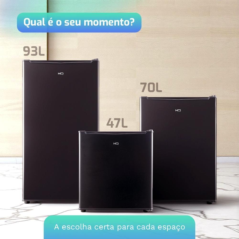 Frigobar Geladeira HQ 47 Litros Preto BC-47 110VO Frigobar HQ BC-47 une design funcional, operação silenciosa e eficiência energética com ótimo custo-benefício. Disponível também nos tamanhos 70L e 93L, a linha HQ foi desenvolvida para diferentes perfis de uso, mantendo o mesmo padrão de excelência.Diferenciais Comerciais- Capacidade ideal para armazenar bebidas, lanches e refeições rápidas- Funcionamento silencioso (≤ 42 dB) para maior conforto- Controle de temperatura com 7 níveis (de 0 °C a 8 °C)- Porta reversível: adapte conforme o layout do ambiente- Prateleira interna removível: otimize o espaço como quiser- Gás ecológico R600a: mais eficiência e menor impacto ambientalDesign e Estrutura Interna- 1 prateleira removível de aço- Caixa coletora de água- Porta reversível- Porta-garrafa- Não possui: iluminação interna, porta-latas, bandeja de ovos, freezerEspecificações TécnicasMarca: HQModelo: BC-47Cor: PretoCapacidade Total: 47 LitrosVoltagem: 110VCorrente elétrica: 0,95A Frequência: 60 HzConsumo (kWh/mês): 16,8Classificação energética: ASistema de refrigeração: ÚnicoFaixa de temperatura: 0 °C a 8 °CControle de temperatura: Mecânico com 7 níveisGás refrigerante: R600a (18g)Tipo de degelo: ManualNível de ruído: 42 dBAltura: 49,5 cmLargura: 44 cmProfundidade: 48,5 cmPeso: 13,6 kgGarantia: 3 meses de garantia legal + 9 meses para de fabricação