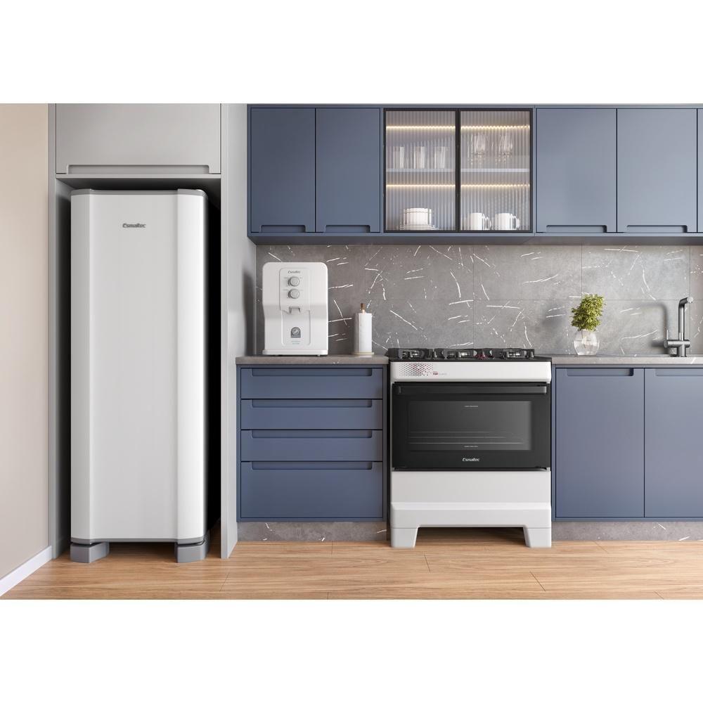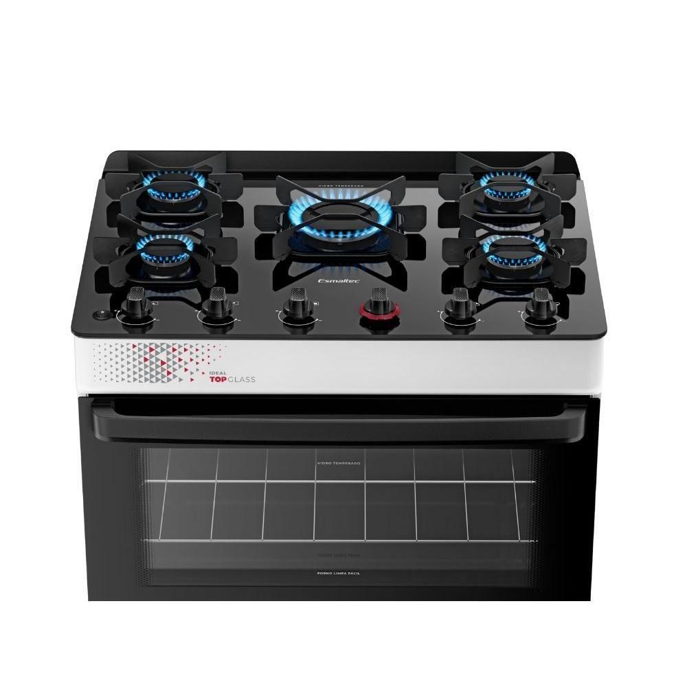Fogão Esmaltec 5 Bocas Ideal Top Glass Mesa De Vidro Forno 84 Litros Branco T5VAB Bivolt