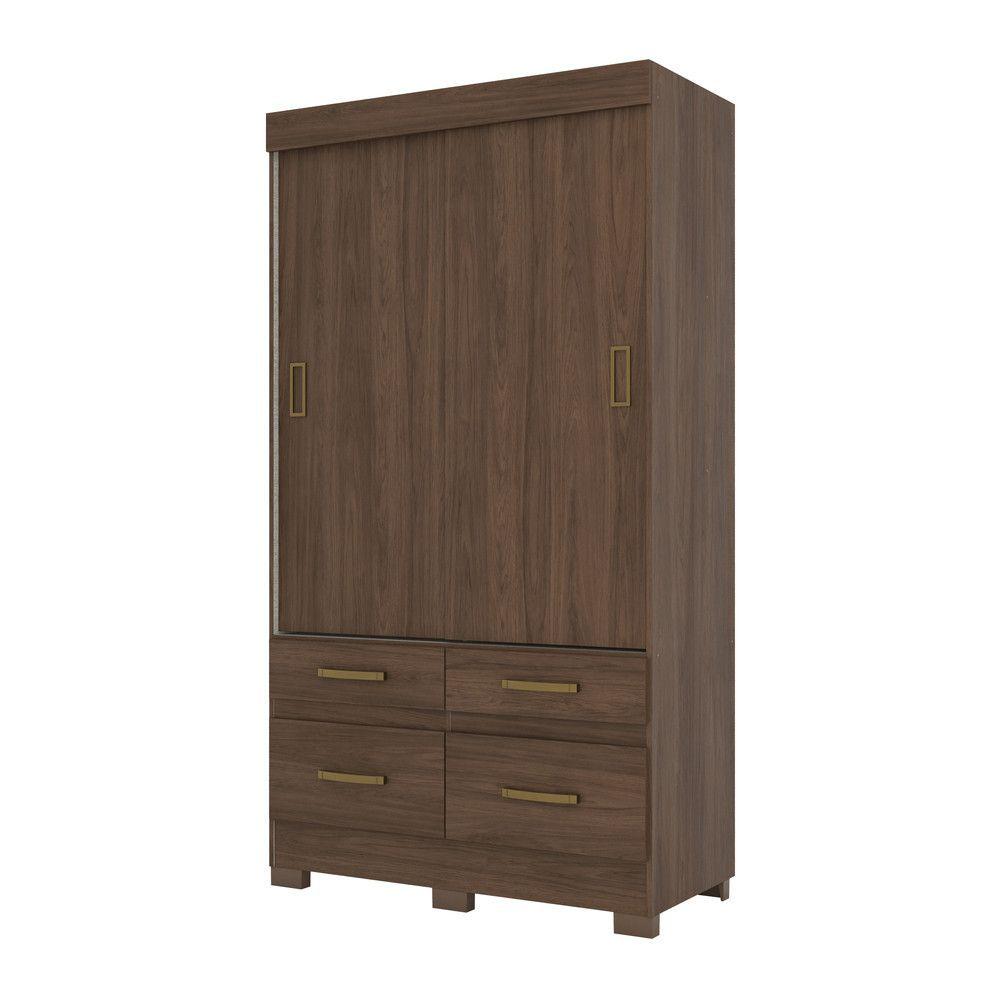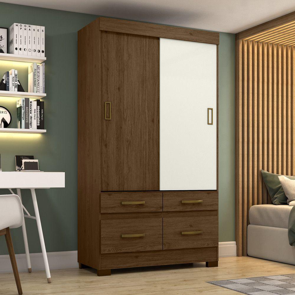 Guarda-roupa Solteiro 02 Portas Deslizantes 04 Gavetas Marel Briz Castanho/castanho Off White
