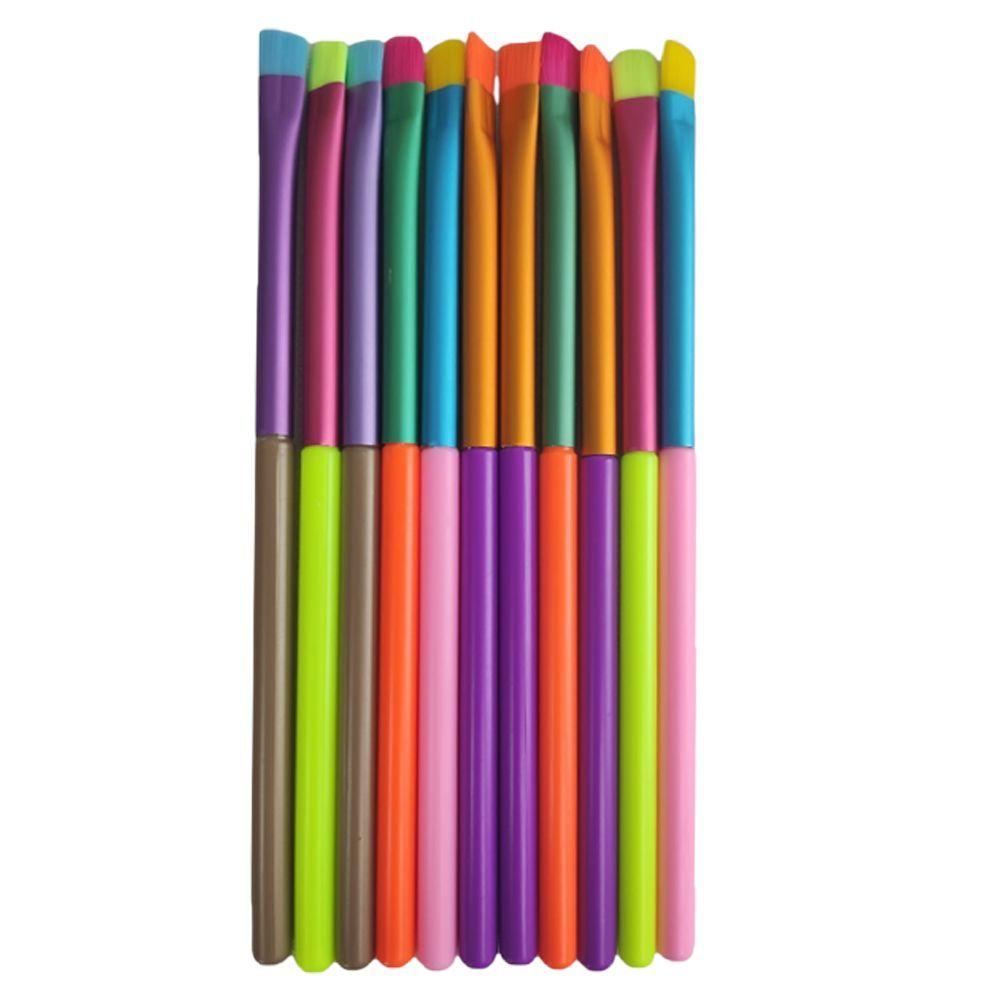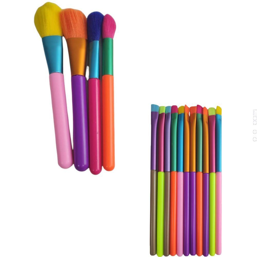 Pincel Maquiagem Kit 15 Peças Neon Portatil Colorido