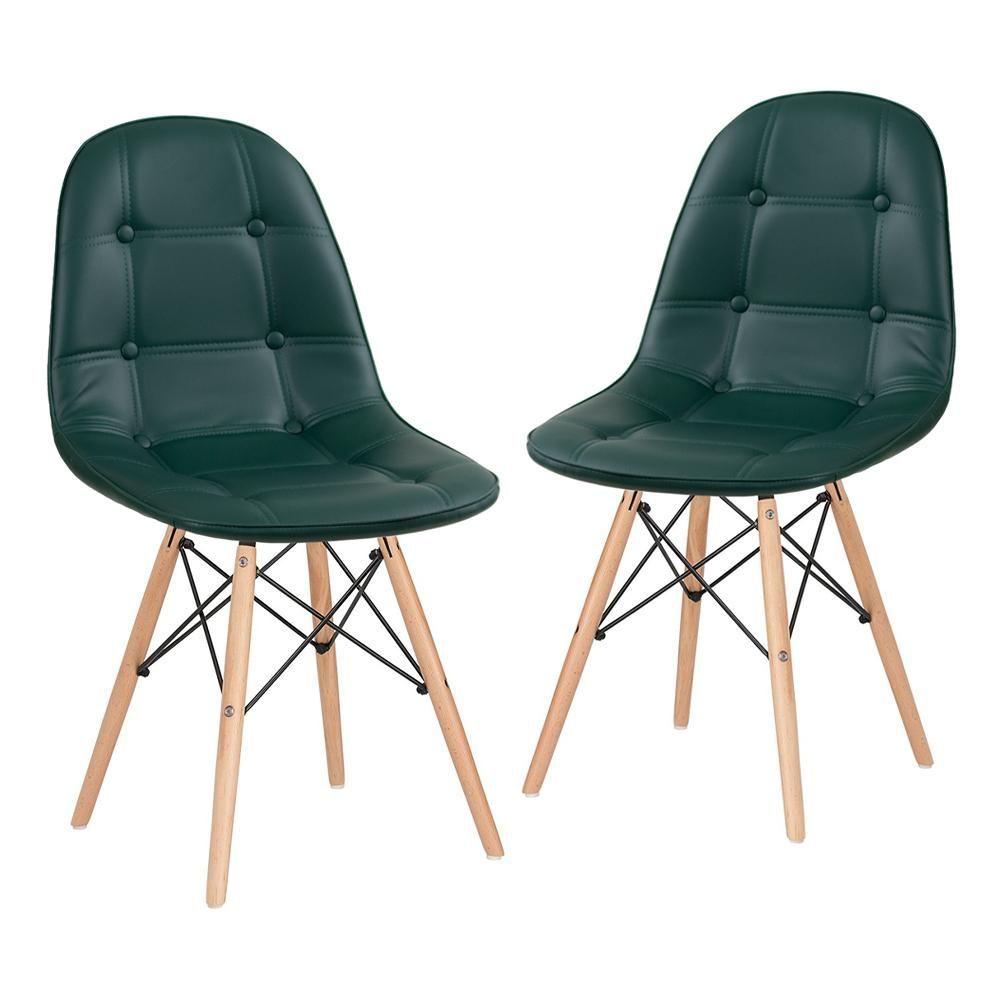 Kit - 2 X Cadeiras Estofadas Eames Eiffel Botonê - Base De Madeira Clara - Verde EscuroCadeira Eames Botonê: Material do assento: Couro PU - Material da base: Madeira e aço - Altura do encosto: 82 cm - Altura do assento: 45 cm - Largura do assento: 44 cm - Profundidade do assento: 38 cm - Distância entre os pés: 40 cm - Peso suportado: 130 kg - Garantia: 3 meses. Fabricante: Mobili | RBN: 17100656011 | Tonalidade: Multicolorido | Produto: Cadeira | Cômodo Indicado: Cozinhas | Material da Estrutura: Madeira | Garantia do Fabricante: 3 meses | Acompanha Braço: Não | Cor: Multicolorido | Peso do Produto: 5 | Acompanha Almofada: Não | Material do assento: Couro PU | Material da base: Madeira e aço | Peso suportado: 130 kg | Material para filtro: Couro PU | Estado de origem: SC | Largura: 44 cm | Profundidade do assento: 38 cm | Altura: 45 cm