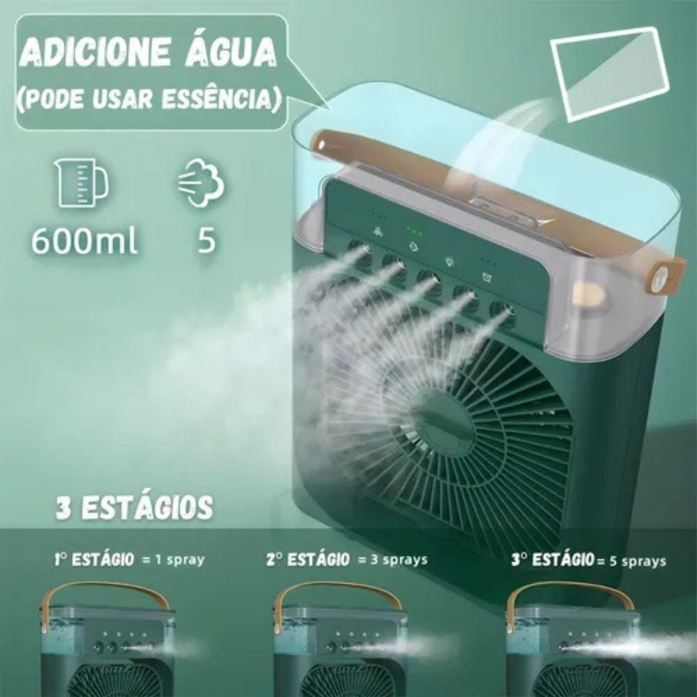Mini Climatizador Silencioso Para Ambientes PequenosAtenção: Este produto será enviado em cor sortida, conforme disponibilidade de estoque.Transforme seus dias quentes em momentos de puro conforto com este climatizador portátil multifuncional. Ideal para quem busca praticidade e bem-estar, ele oferece uma solução completa para refrescar, umidificar e aromatizar o ambiente de forma simples e eficiente. Seja em casa, no escritório ou em viagens, este climatizador é seu aliado perfeito para enfrentar o calor com muito mais conforto.Com um design moderno e compacto, este climatizador portátil é fácil de transportar e se adapta a qualquer ambiente. A regulagem de pressão permite ajustar a intensidade da ventilação de acordo com suas preferências, enquanto o reservatório de água garante um fluxo contínuo de umidade, prevenindo o ressecamento do ar e proporcionando alívio para as vias respiratórias. Além disso, você pode adicionar algumas gotas do seu aromatizador à base de água favorito para criar um ambiente ainda mais agradável e personalizado.A praticidade é um dos grandes destaques deste climatizador. Com carregamento via USB, você pode conectá-lo facilmente a laptops, power banks ou adaptadores de tomada, garantindo que ele esteja sempre pronto para uso. O funcionamento silencioso proporciona um ambiente tranquilo e confortável, ideal para momentos de descanso ou trabalho. E para facilitar ainda mais o transporte, ele possui uma alça resistente e confortável.Não perca a oportunidade de adquirir este climatizador portátil multifuncional, que oferece conforto, praticidade e bem-estar em um só produto. Lembre-se que a cor do produto será enviada de acordo com a disponibilidade do estoque. Refresque seus dias com este incrível climatizador!Atenção: Este produto será enviado em cor sortida, conforme disponibilidade de estoque.Transforme seus dias quentes em momentos de puro conforto com este climatizador portátil multifuncional. Ideal para quem busca praticidade e bem-estar, ele oferece uma solução completa para refrescar, umidificar e aromatizar o ambiente de forma simples e eficiente. Seja em casa, no escritório ou em viagens, este climatizador é seu aliado perfeito para enfrentar o calor com muito mais conforto.Com um design moderno e compacto, este climatizador portátil é fácil de transportar e se adapta a qualquer ambiente. A regulagem de pressão permite ajustar a intensidade da ventilação de acordo com suas preferências, enquanto o reservatório de água garante um fluxo contínuo de umidade, prevenindo o ressecamento do ar e proporcionando alívio para as vias respiratórias. Além disso, você pode adicionar algumas gotas do seu aromatizador à base de água favorito para criar um ambiente ainda mais agradável e personalizado.A praticidade é um dos grandes destaques deste climatizador. Com carregamento via USB, você pode conectá-lo facilmente a laptops, power banks ou adaptadores de tomada, garantindo que ele esteja sempre pronto para uso. O funcionamento silencioso proporciona um ambiente tranquilo e confortável, ideal para momentos de descanso ou trabalho. E para facilitar ainda mais o transporte, ele possui uma alça resistente e confortável.Não perca a oportunidade de adquirir este climatizador portátil multifuncional, que oferece conforto, praticidade e bem-estar em um só produto. Lembre-se que a cor do produto será enviada de acordo com a disponibilidade do estoque. Refresque seus dias com este incrível climatizador!