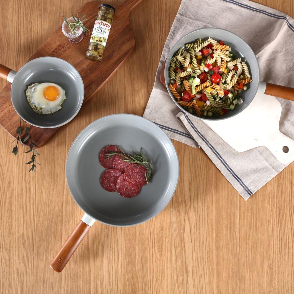 Frigideira Baby Wok 18cm/1,0l - Indução Com Revestimento Cerâmico - Fika - Neoflam - Midnight GreenDescriçãoFrigideira Cerâmica Baby Wok Fika 18cm/1,0L (EK-FI-B18MG)Transforme sua rotina na cozinha com a Frigideira Cerâmica Baby Wok FIKA 18cm, uma peça que incorpora o conceito sueco de pausa para o café, trazendo mais leveza e prazer ao seu dia a dia. Com seu design minimalista e premiado com o Reddot 2020, ela não é apenas funcional, mas também um elemento de sofisticação para sua cozinha. Ideal para preparar refeições para 1 a 2 pessoas, esta frigideira versátil é perfeita para fritar, cozinhar e até mesmo servir com estilo e praticidade.Desfrute de uma experiência culinária mais segura e saudável graças ao potente revestimento Xtrema antiaderente, fabricado com minerais naturais e completamente livre de PFOA. A durabilidade superior e a resistência a riscos garantem uma vida útil prolongada para sua frigideira. Fabricada em alumínio injetado de alta qualidade, ela otimiza a distribuição de calor, resultando em menor consumo de energia e cozimento uniforme. Além disso, sua estrutura sem parafusos ou rebites em contato com o alimento facilita a higiene, tornando a limpeza rápida e eficiente. Compatível com todos os tipos de fogão – gás, elétrico, vitrocerâmico e indução – a Frigideira Baby Wok FIKA 18cm é a escolha ideal para cozinheiros modernos que buscam inovação e estilo em sua cozinha. Descubra Xtrema: A Revolução do Revestimento Cerâmico para uma Cozinha Saudável e SustentávelXtrema é uma inovadora tecnologia de revestimento cerâmico, desenvolvida com pigmentos naturais e uma produção eco consciente, sem emissão de PFOA ou resíduos prejudiciais. Projetada para a saúde e segurança, ela utiliza materiais como cerâmica, areia e rochas naturais, garantindo um produto livre de substâncias nocivas. Isso garante pratos puros, saborosos e genuinamente saudáveis, preservando os nutrientes e o verdadeiro paladar dos alimentos.O revestimento XTREMA em 6 camadas oferece alta performance proporcionando excelente resistência a arranhões, além de uma antiaderência durável, tornando o cozimento e a limpeza mais fáceis e eficientes. Essa estrutura multicamadas aprimora também a durabilidade e a eficiência térmica, distribuindo o calor de forma mais uniforme. Ao escolher panelas com tecnologia Xtrema, você investe em uma solução avançada para uma cozinha mais saudável, sustentável e com performance superior, ideal para quem busca o melhor em utensílios antiaderentes.Especificações TécnicasCódigo do Produto EK-FI-B18MGModelo FikaPeso 0,8 KgVolume 1,0 LEspessura 4,4 mmMaterial Alumínio InjetadoRevestimento XtremaUso em fogões Gás, Elétrico, Vitrocerâmico e InduçãoCertificação PFOA FreeCor CinzaDimensões da Caixa (AxLxC) 22cm x 22cm x 40cmCuidados-Utilizar a panela untada com óleo espalhado por toda extremidade.-Não aqueça a panela, caçarola ou frigideira vazia-Recomendamos sempre o uso em fogo baixo - médio, os produtos tem uma alta eficiência térmica-Utilize utensílios domésticos de silicone, bambo ou plástico (Nunca use objetos cortantes e pontiagudos)-Efetue a limpeza apenas utilizando detergente neutro e esponja macia-Em caso de resíduo de comida mais resistente, coloque uma gota de detergente e água, leve ao fogo baixo, por 3 minutos-Não utilize produtos abrasivos ou químicos para a limpezaGarantia90 dias de garantia legal para defeitos de fabricação.A garantia não inclui defeitos causados por má utilização do produto.