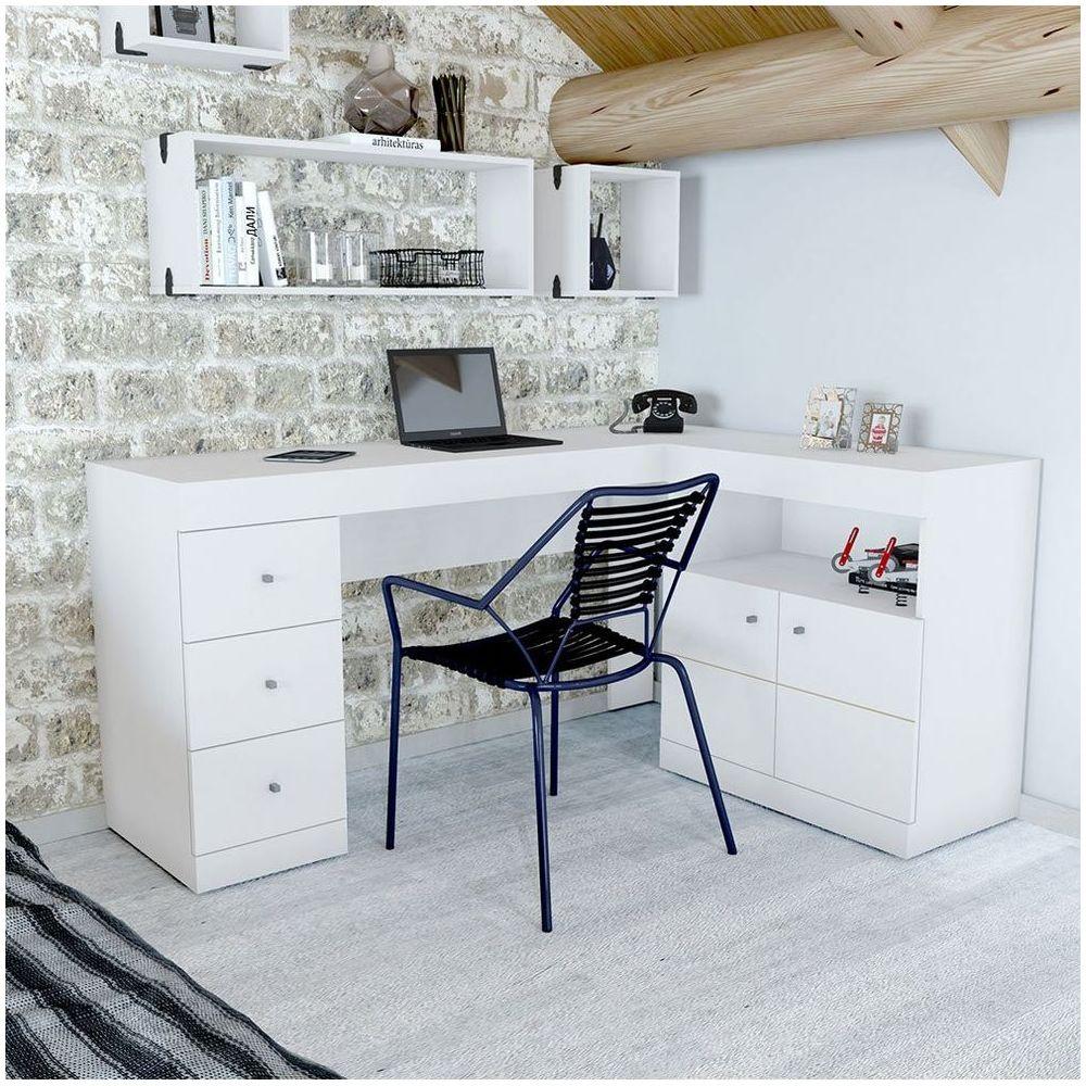 Mesa Computador Pc Job Canto 2 Portas 100 Bp Caemmun Branco