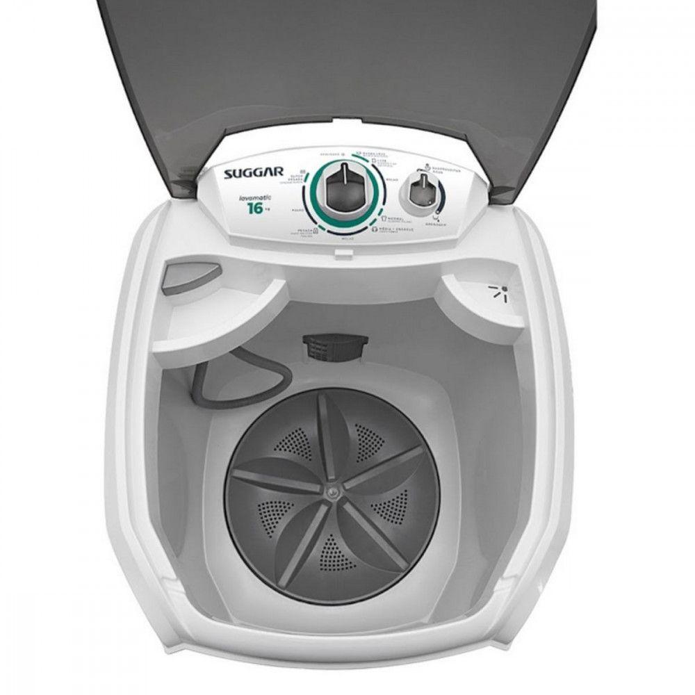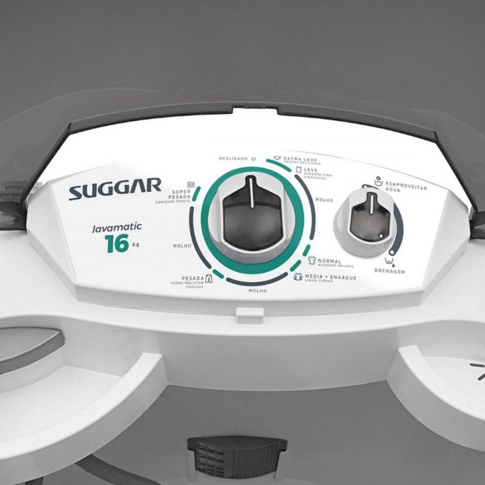 Lavadora Lavamatic 16kg LC16 PB Suggar Branco 220VA lavadora Suggar Lavamatic 16kg e um eletrodomestico espacoso e eficiente, ideal para familias maiores ou para quem precisa lavar grandes volumes de roupa de uma so vez.Com capacidade para ate 16 quilos de roupa, oferece praticidade e conveniencia na hora de lavar.Seu design moderno e funcional inclui uma variedade de programas de lavagem para diferentes tipos de tecido e niveis de sujeira, garantindo resultados de limpeza excepcionais.Alem disso, sua eficiencia energetica ajuda a economizar energia durante o uso, tornando-a uma escolha sustentavel para o lar.Modelo:LAVAMATICDiferencial:Potencia: 530WMaior batedor da categoriaLava ate 16kg de roupasSuper capacidade: Lava edredom de casalSistema de drenagemFuncao reaproveitar aguaDimensoes do produto:Altura: 96,1 cmLargura: 51,3 cmProfundidade: 56,7 cmPeso: 10,55 kgGarantia do Fornecedor: 12 meses (Contra de fabricacao a contar do momento da emissao da ).