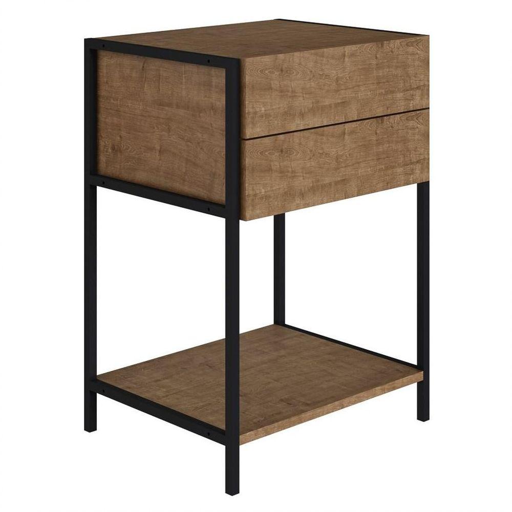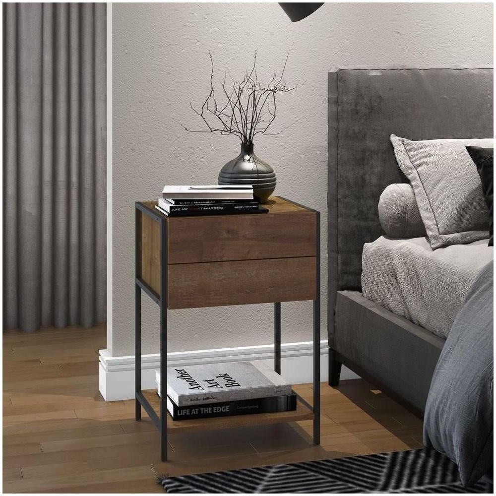 Mesa De Cabeceira 2 Gavetas Estilo Industrial Steel Quadra Vermont Base Preta