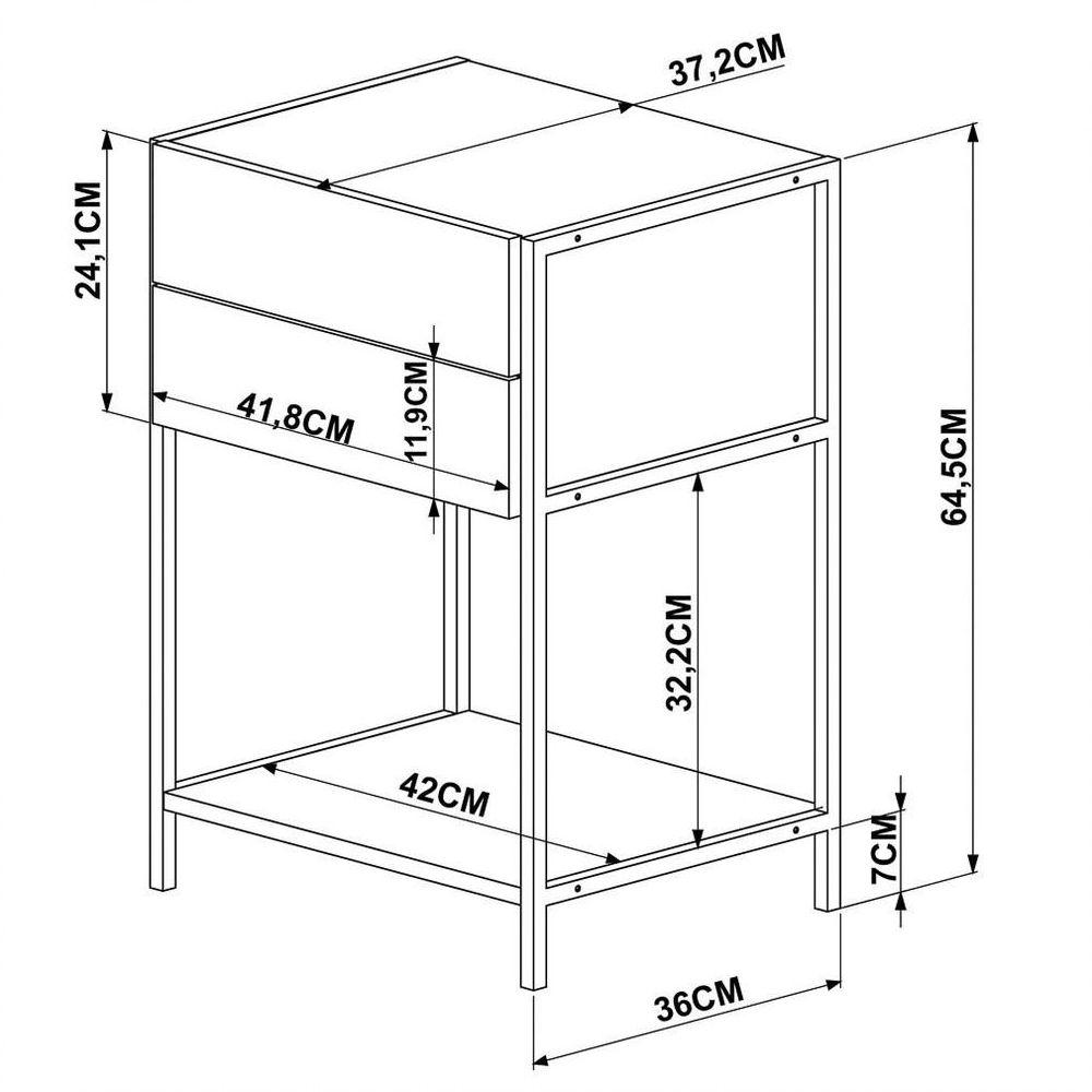 Mesa De Cabeceira 2 Gavetas Estilo Industrial Steel Quadra Vermont Base Preta - ArtesanoAh, o quarto sem dúvidas é o cômodo preferido de muitos, afinal proporciona aconchego e descanso após um longo dia atarefado. E você sabia que a Mesa de Cabeceira é um móvel essencial para garantir mais praticidade a esse cômodo? Confira!!Buscando sempre satisfazer a necessidade dos clientes, a Artesano desenvolveu a Mesa de Cabeceira Steel Quadra. Ela possui estrutura em aço, gavetas e prateleira em MDP com acabamento em pintura BP, sendo resistente e duradoura. As gavetas são de deslize suave, um móvel perfeito para deixar um abajur, celular ou seu livro preferido antes de dormir. Legal, né? Não perca tempo e garanta já a sua!!Dimensões do ProdutoLargura: 45 cm.Altura: 65 cm.Profundidade: 37,3 cm.Peso: 13 Kg.Características do ProdutoMaterial da Estrutura: MDP/Aço.Material da Prateleira: MDP.Acabamento: Pintura BP.Escala de Brilho: Fosco.Possui Rodízios: Não.Possui Prateleiras: Sim.Peso Suportado: 10 Kg.Possui Gavetas: Sim.Quantidade de Gavetas: 1 Gaveta.Diferenciais: - Produto compacto. - Design moderno. - Estrutura na tonalidade preto.Sistema de Montagem: Minifix / Cavilhas / Parafs.Manual de Montagem: Sim.Complexidade da Montagem: Média.Volumes: 1 Volume.Conteúdo da Embalagem: 1 Mesa de Cabeceira.Garantia do Fabricante: 90 dias contra defeito de fabricação.Montagem: Recomendamos que seja feita por um .Recomendação de Limpeza: Utilize pano levemente úmido.Observações importantes - Produto para residencial em ambiente interno, não devendo ficar exposto diretamente ao sol, calor e umidades excessivas. - Pode haver alguma diferença de tonalidade entre a imagem e o produto real, por conta do tratamento de imagens e a calibração de cores do seu monitor. - As imagens são meramente ilustrativas, não acompanham objetos de decoração e eletrônicos. -, caso haja alguma não assine o comprovante de recebimento. - Montagem, desmontagem e outras instalações serão de responsabilidade do cliente. . - C Largura: 45 cm | Altura: 65 cm | Profundidade: 37 cm | Peso: 13 Kg | Cor: Vermont