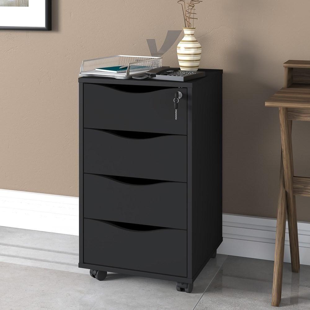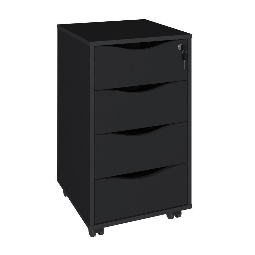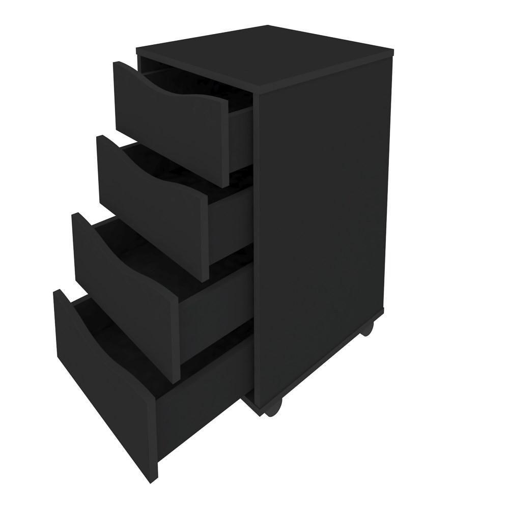 Gaveteiro 4 Gavetas Pés Rodízios Mobile Bit Preto Artany
