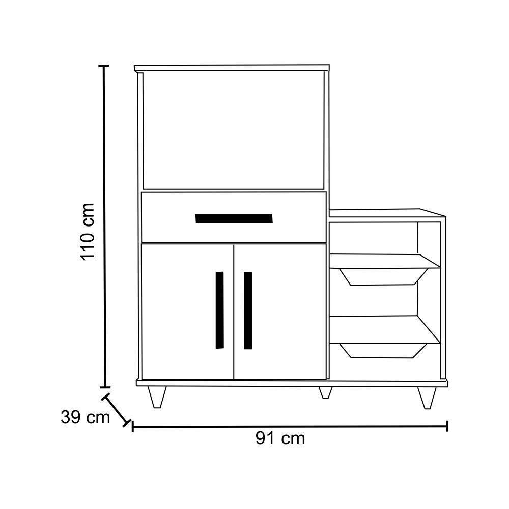 Kit 2 Armários Multiuso Irlanda Com Fruteira Branco/preto - Lumil MóveisPara organizar seus utensílios, nada melhor que um móvel de primeira, não é?Pensando nisso, o Kit 2 Armários Multiuso Irlanda com Fruteira da Lumil Móveis é a escolhe certeira, sendo moderna e funcional para levar mais praticidade à sua cozinha. O móvel possui nicho com espaço para microondas ou forno elétrico, otimizado com 1 gaveta, 3 portas convencionais e 2 cestos para fruteira. Além disso, conta com estrutura em MDP/MDF, corrediçãs metálicas, puxadores em PVC cromado e com acabamento BP garantindo maior durabilidade ao produto. Confira e leve já o seus!Dimensões dos ProdutosLargura: 91 cm.Altura: 98,5 cm.Profundidade: 39 cm.Peso: 54 Kg.Outras Medidas (Largura x Altura): Espaço para Microondas: 53 x 35 cm.Características do ProdutoMaterial da Estrutura: MDP 12 mm.Material do Fundo: MDF 3 mm.Peso Suportado: 30 kg distribuídos cada.Tonalidade: Branco.Acabamento: BP.Escala de Brilho: Fosco.Quantidade de Portas: 4 Portas.Material da Porta: MDP.Quantidade de Gavetas: 2 Gavetas.Material da Gaveta: MDP.Tipo de Puxador: PVC cromado.Tipo de Corrediças: Metálicas.Possui Prateleiras: Sim.Material da Prateleira: MDP.Possui Pés: Sim.Tipo de Pé: PVC.Altura dos pés:8CM s/ regulagem.Diferenciais: - Design moderno. - Amplo espaço interno. - 4 Cestos em PVC.Sistema de Montagem: Minifix / Cavilhas / Parafusos.Manual de Montagem: Sim.Complexidade da Montagem: Média.Volumes: 2 Volumes.Garantia do Fabricante: 90 dias contra de fabricação.Montagem: Recomendamos que seja feita por um .Recomendação de Limpeza: Utilize pano levemente úmido.Observações importantes - Produto para uso residencial em ambiente interno, não devendo ficar exposto diretamente ao sol, calor e umidades excessivas. - Pode haver alguma diferença de tonalidade entre a imagem e o produto real, por conta do tratamento de imagens e a calibração de cores do seu monitor. - As imagens são meramente ilustrativas, não acompanham objetos de decoração e eletrônicos. - Ao receber a mercadoria, o cliente deve verificar as condições da embalagem, caso haja alguma não assine o de . - Montagem, desmontagem e outras instalações serão de responsabilidade do cliente. Não nos responsabilizamos, no ato da , por subir escadas/elevadores ou pelo por guincho em apartamentos. Eventuais despesas são de responsabilidade do comprador. - Confira as dimensões do produto e certifique-se de que passará normalmente por supostos elevadores, portas, escadas e/ou corredores de sua residência. Largura: 91 cm | Altura: 110 cm | Profundidade: 39 cm | Peso: 27 kg | Cor: Branco/Preto