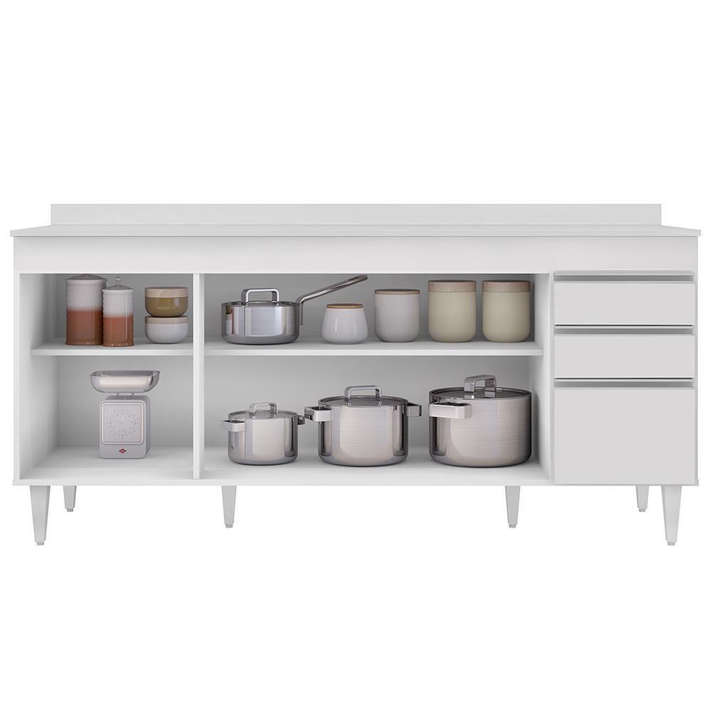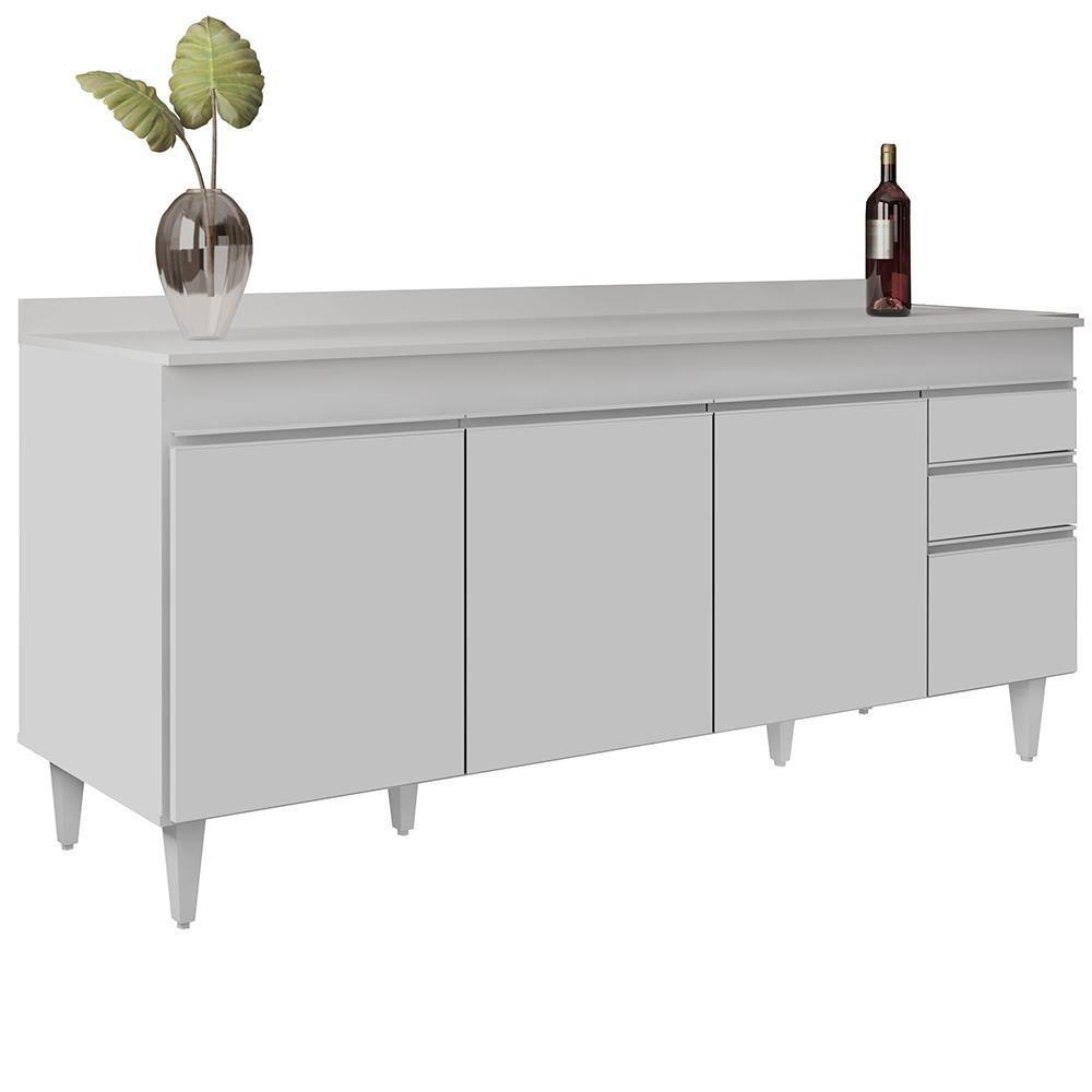 Balcão Gabinete 180cm Com Tampo Dallas Branco - Lumil
