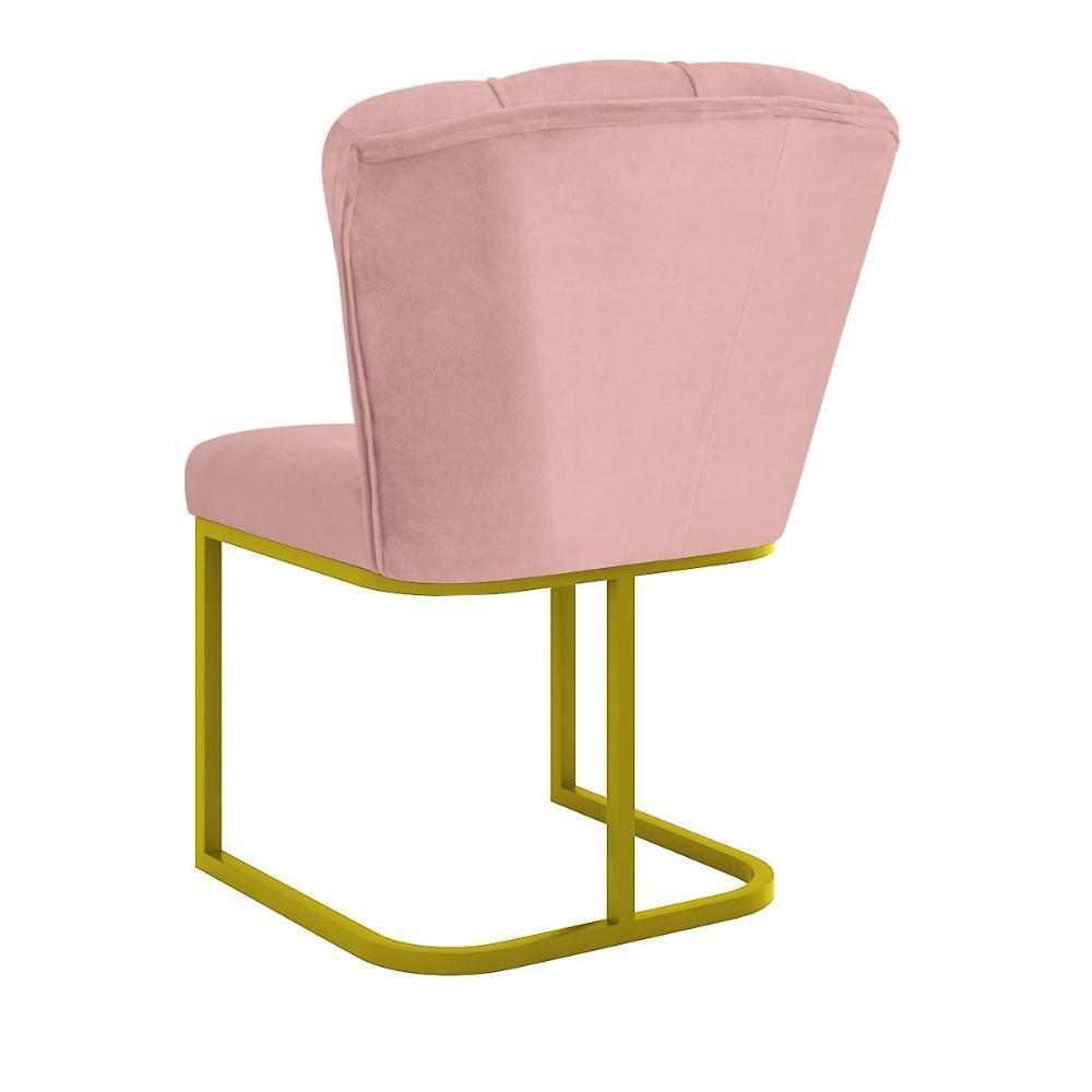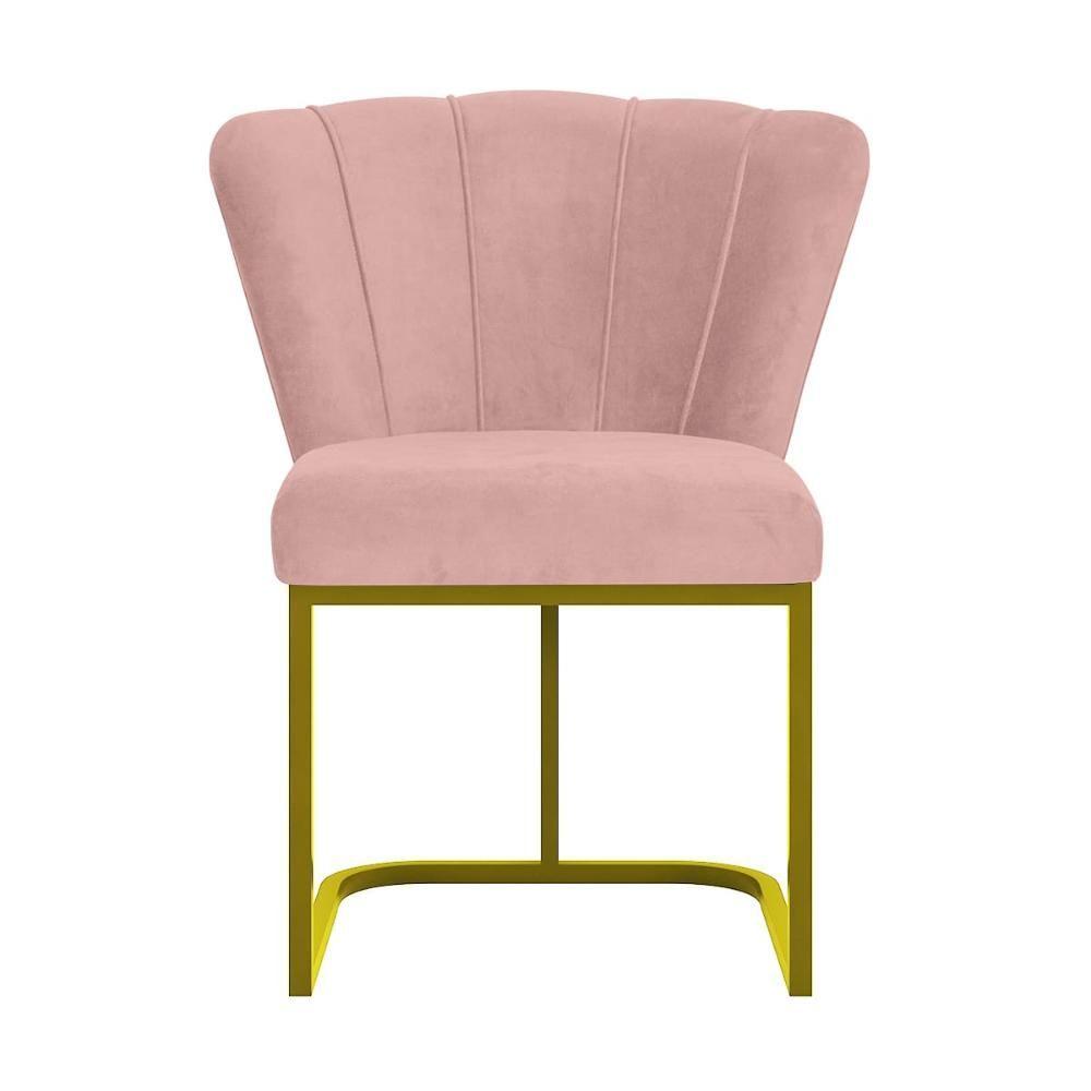 Cadeira Jantar Flor Mesa Cozinha Reforçada Base Metal Dourada Rosa