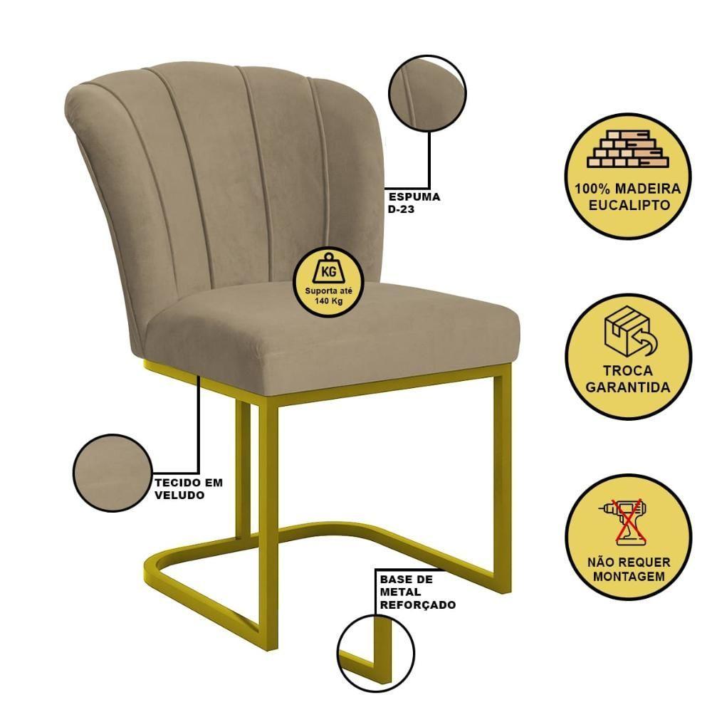 Cadeira Jantar Flor Mesa Cozinha Reforçada Base Metal Dourada Capuccino