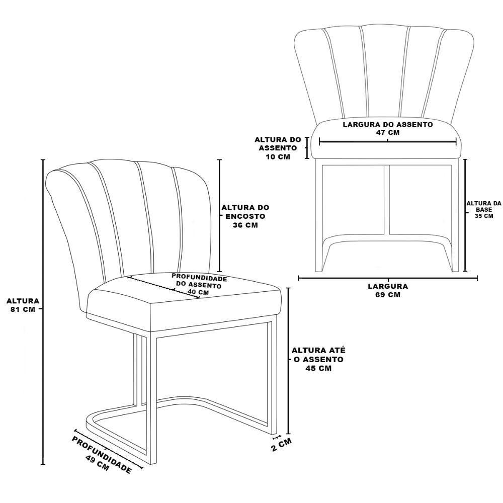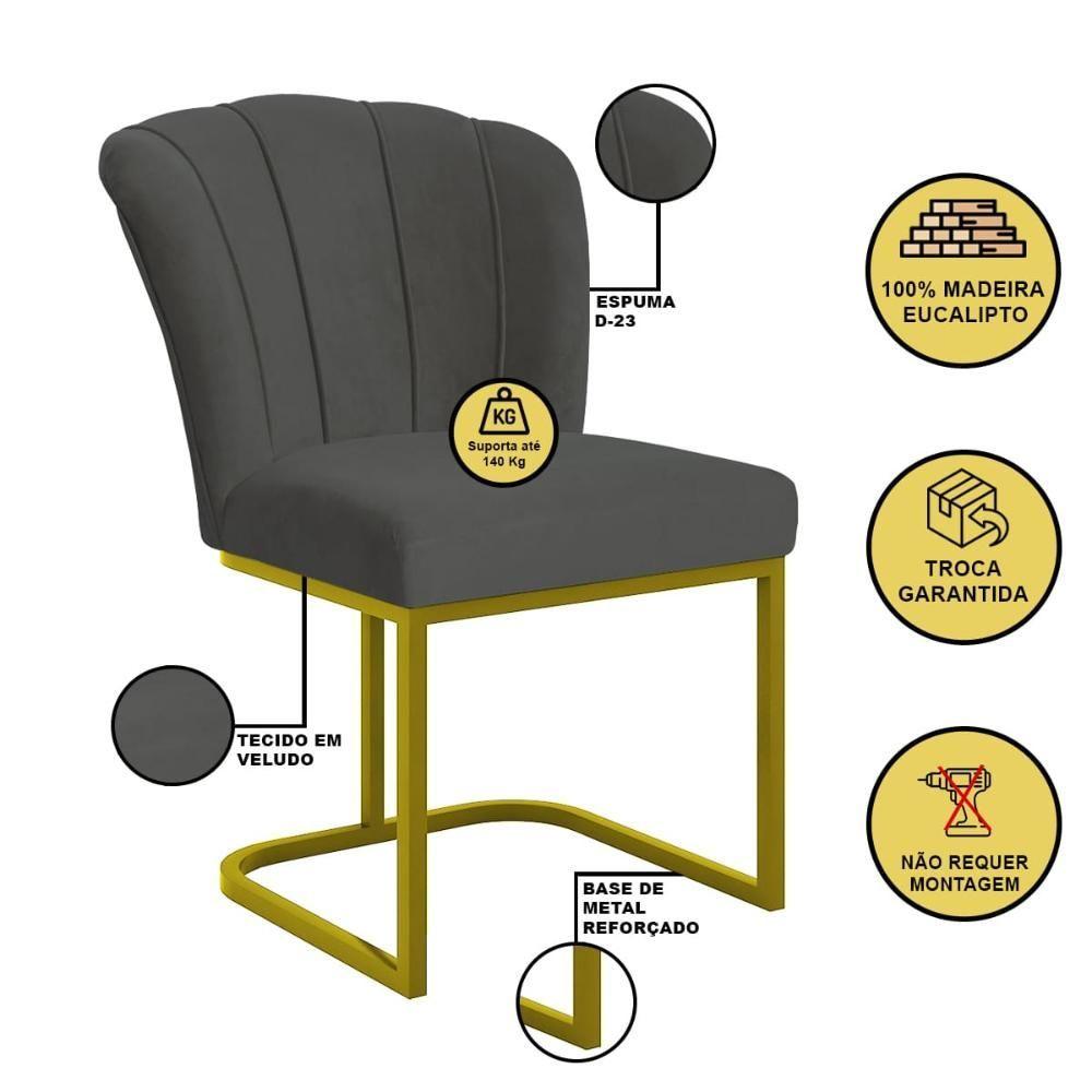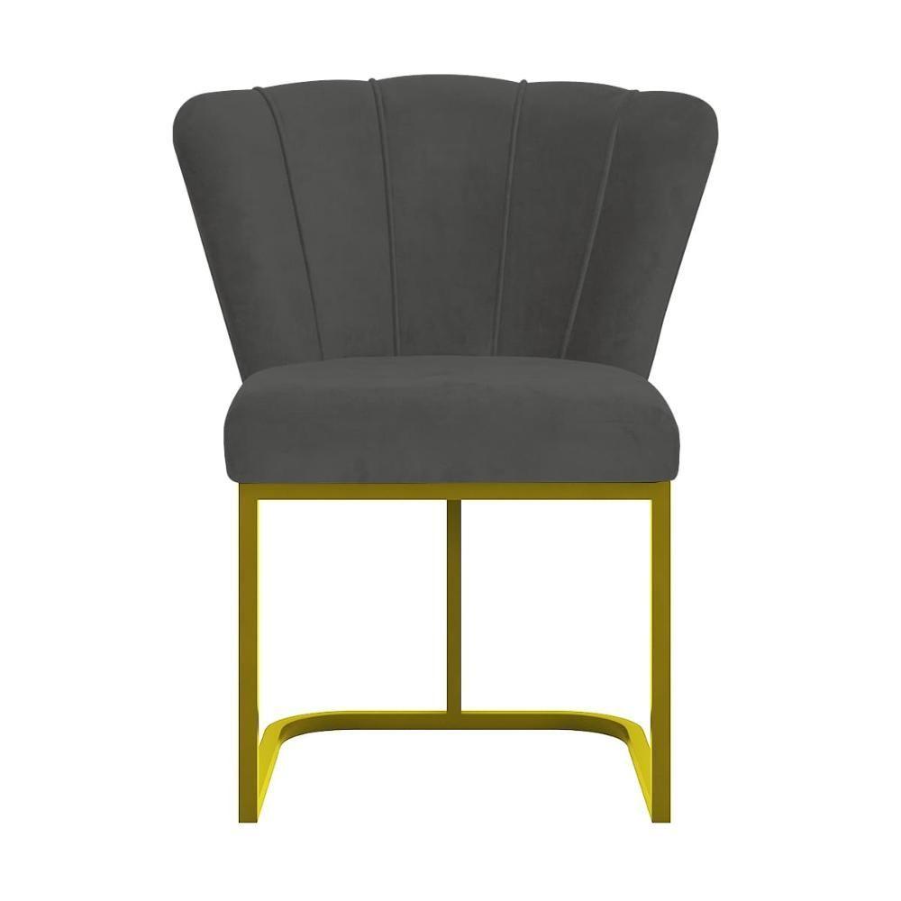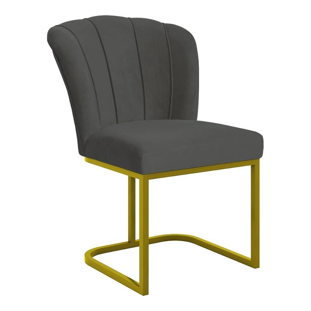 Cadeira Jantar Flor Mesa Cozinha Reforçada Base Metal Dourada Cinza