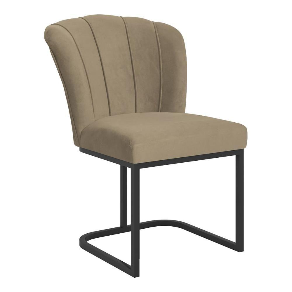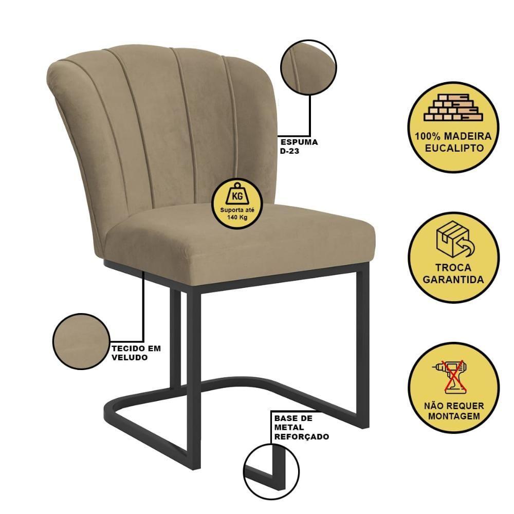 Cadeira Jantar Flor Mesa Cozinha Reforçada Base Metal Preta Capuccino