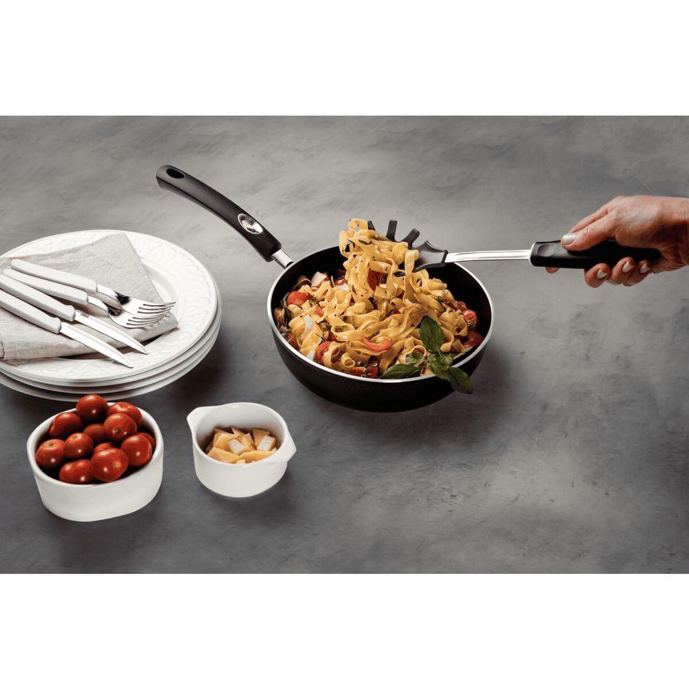 Pegador Massa Nylon C/ Cabo Preto - Tramontina Utilitá 25694/100Detalhes do produtoPermita que o momento à mesa fique ainda mais encantador com o pegador para massa Tramontina Utilitá em nylon com cabo de polipropileno preto. Uma peça da linha Utilità, que oferece para qualquer ocasião mais praticidade e um design diferenciado, levando modernidade e cor para os seus dias. A escolha ideal para tornar todas as ocasiões ainda mais especiais. O pegador para massa é produzido com bojo de nylon nylon que possibilita o uso em panelas com revestimentos antiaderentes e cerâmicos, além disso, possui haste de aço inox e cabo de polipropileno que garante um manuseio confortável e seguro.Informações técnicasPegador para Massa de Nylon que permite uso em temperaturas de até 180 °C e haste de aço inox.O cabo de polipropileno possui furo passante possibilitando que seja pendurado na sua cozinha.Utensílio ideal para uso em panelas com revestimentos antiaderentes e cerâmicos, pois não danifica o produto.Pode ir à máquina de lavar louças facilitando seu dia a dia.Recomendações de usoPara maior durabilidade do produto recomenda-se secar bem antes de guardar, mesmo após lavagem em máquina.Para descarte dos produtos e embalagens siga as orientações de reciclagem vigentes.